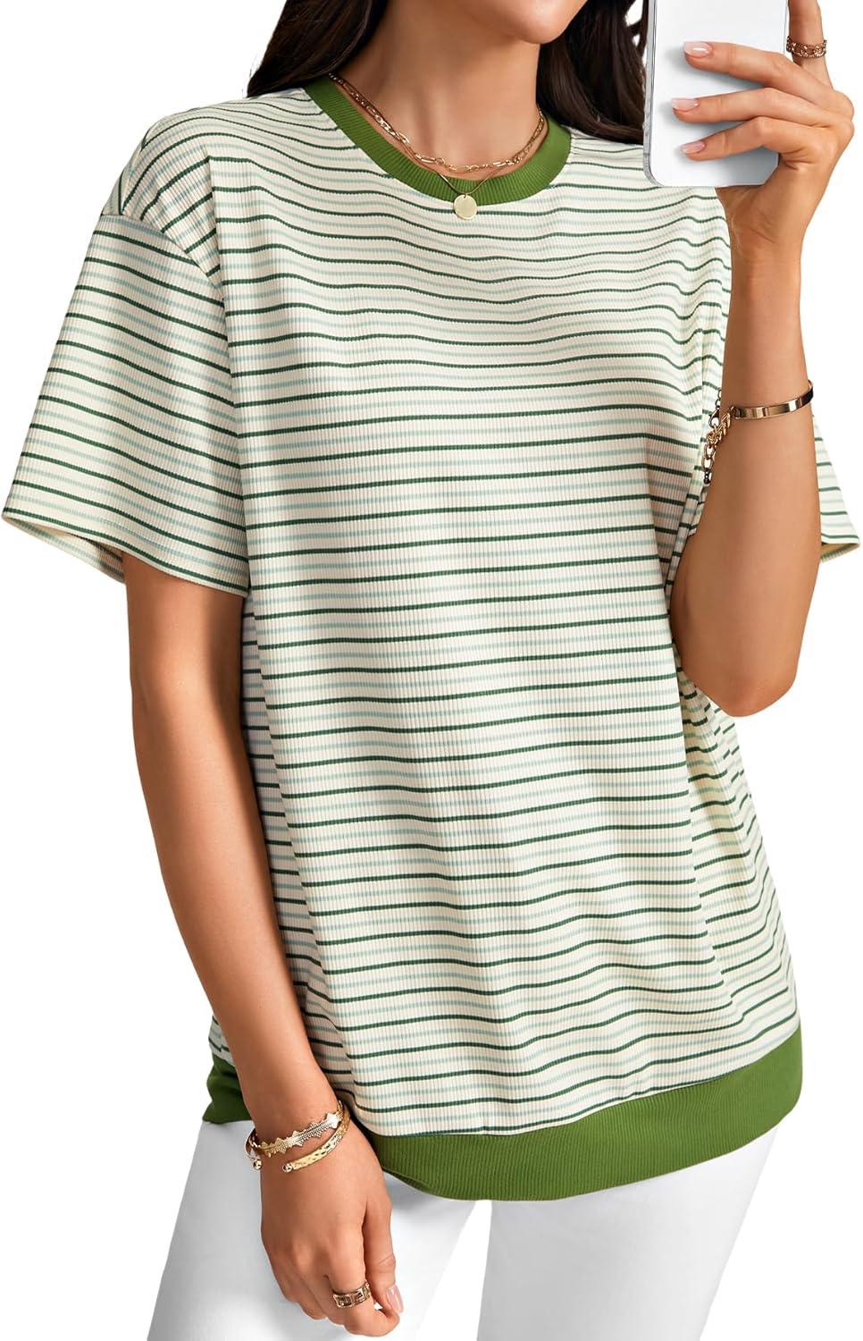 Vrtige Women's Striped Crew Neck Loose Short Sleeve Casual Fashion T Shirts