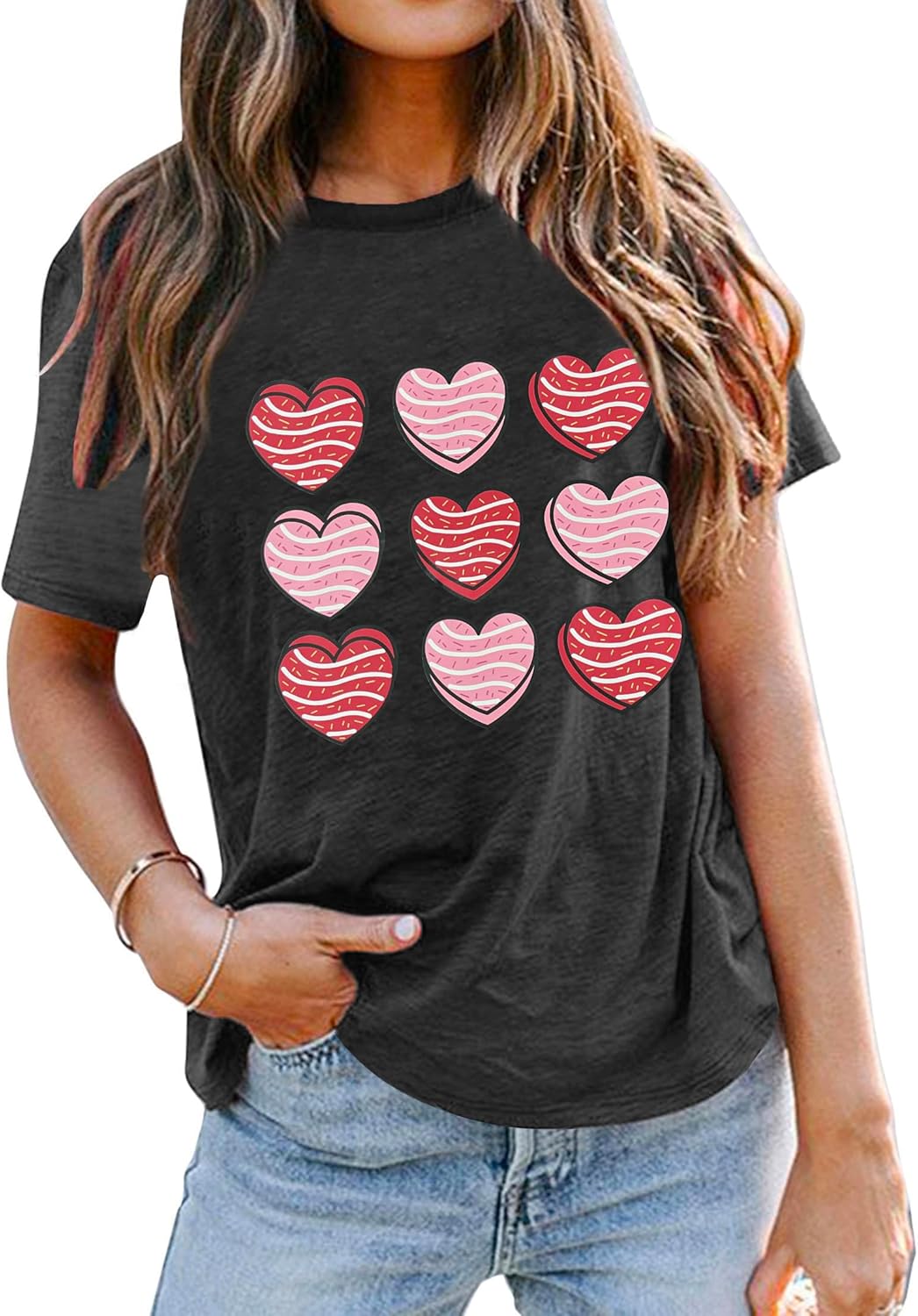 Valentine Shirt for Women Candy Heart Print T-Shirt Casual Short Sleeve Love Heart Tee Tops