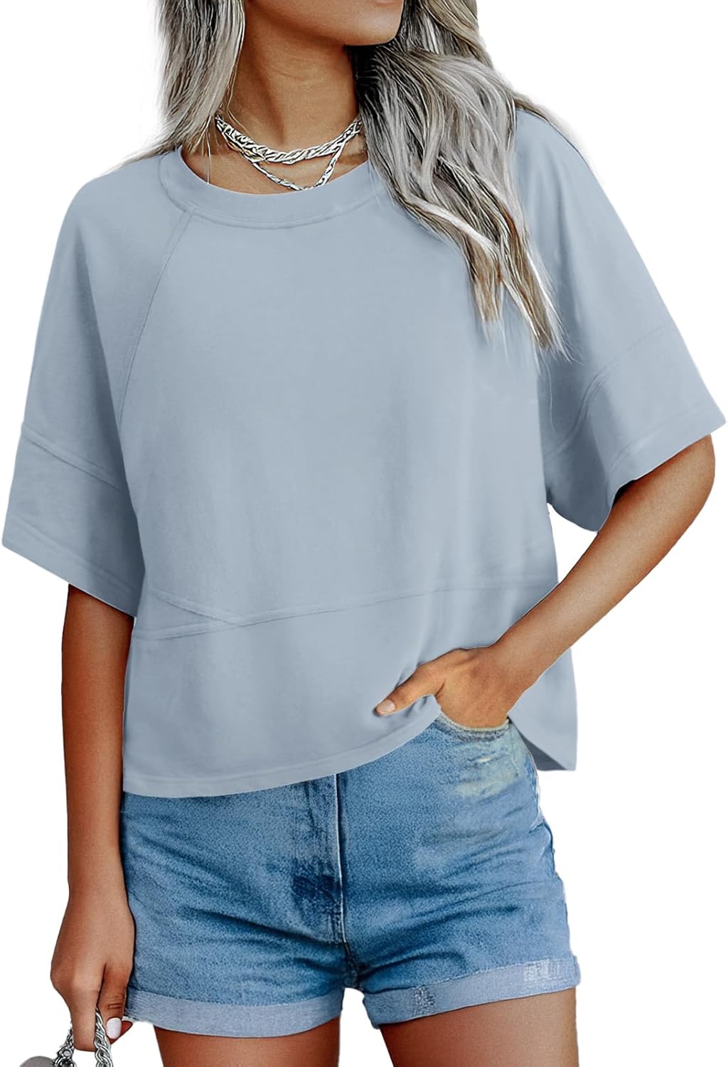 Feiersi Women Cotton T-Shirts Summer Crewneck Pullover Short Sleeve Tops Basic Tops Tees Blouses