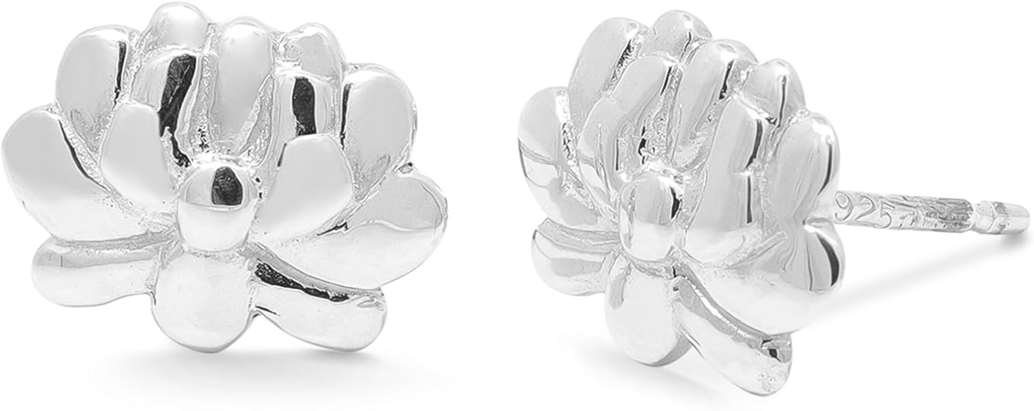Boma Jewelry Sterling Silver Spiritual Lotus Flower Blossom Stud Earrings