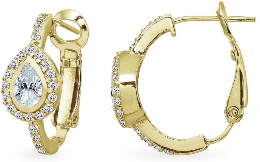 Sterling Silver Cubic Zirconia Teardrop Halo Clutchless Hoop Earrings