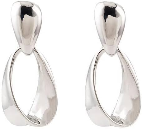 Modern Silver-Tone Abstract Drop Earrings – 18K Gold Plated Minimalist Sculptural Statement Dangle Earrings for Women, Lightweight and Nickel-Free