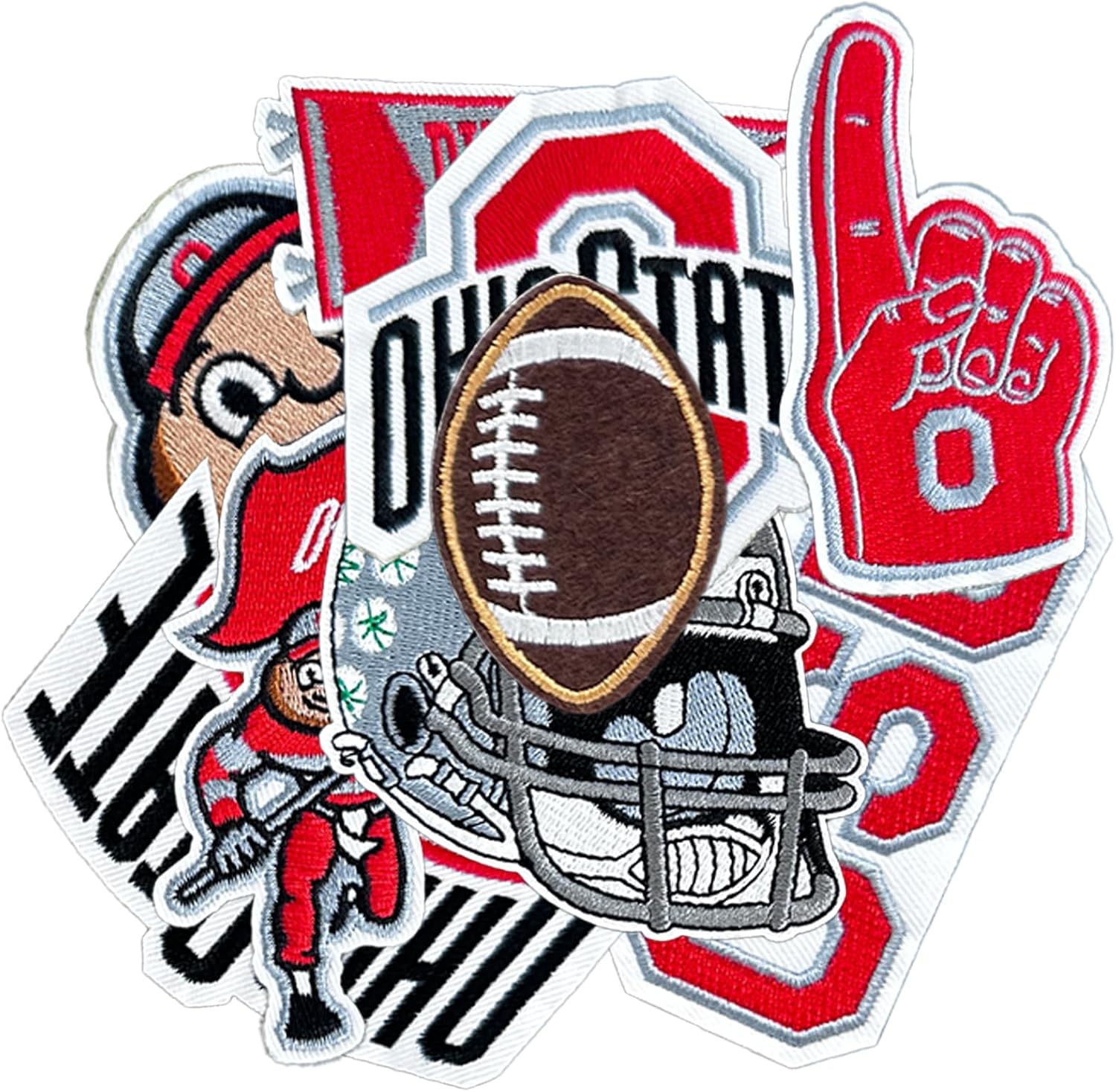 9PCS Ohio Iron On Patches,Embroidered Applique Football for Jeans, T-Shirts, Hats, Backpacks & Sports Gear-Style 1
