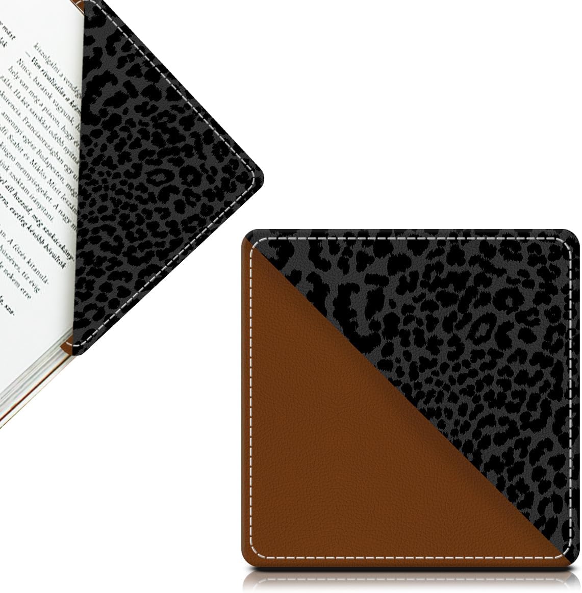 Cute Leather Bookmarks, Fun Triangle Making Corner Bookmark, Book Accessories for Reading Book Lovers, Unbreakable Page Markers for Women Men Luxury Black Leopard