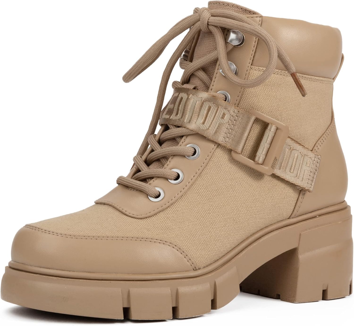 REDTOP Women's Combat Boots Chunky Lug Sole Ankle Boots Lace Up Buckle Casual Shoes