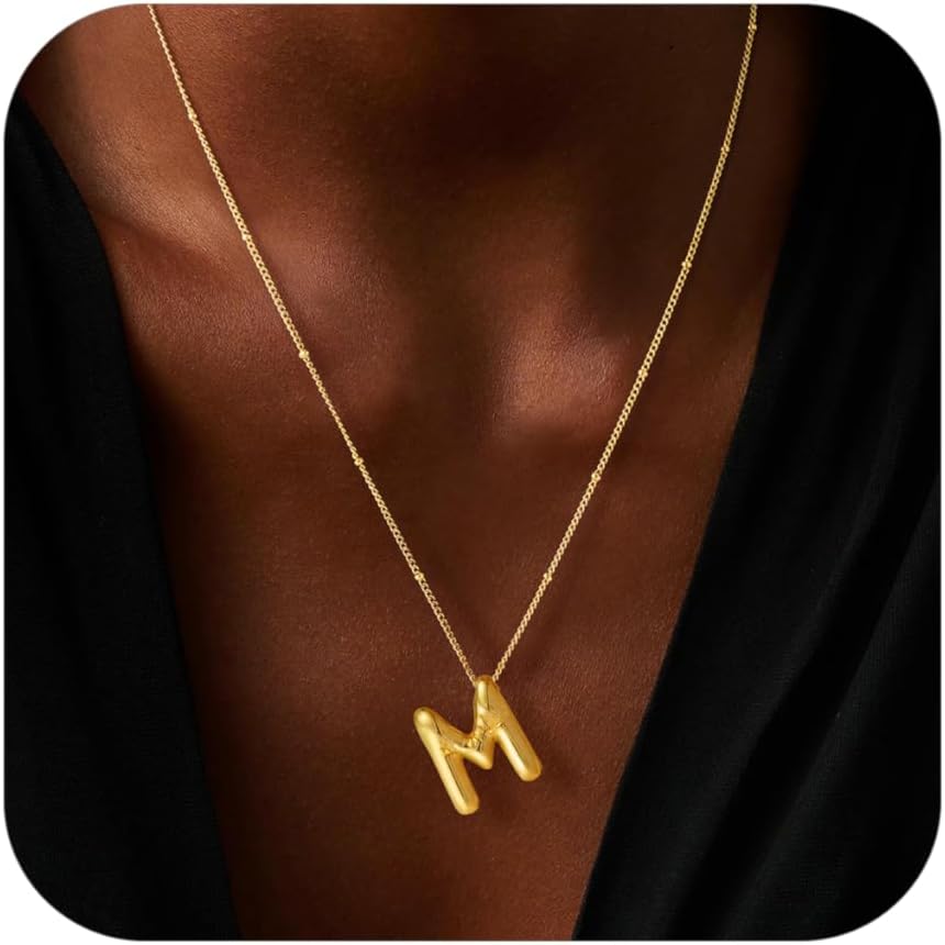 Bubble Letter Necklace Gold, 14k Gold Plated Balloon Initial Necklaces for Women Trendy, Dainty Personalized Name Initial Pendant Letter Charm Necklaces Women Trendy Stuff Gold Jewelry Christmas Gifts