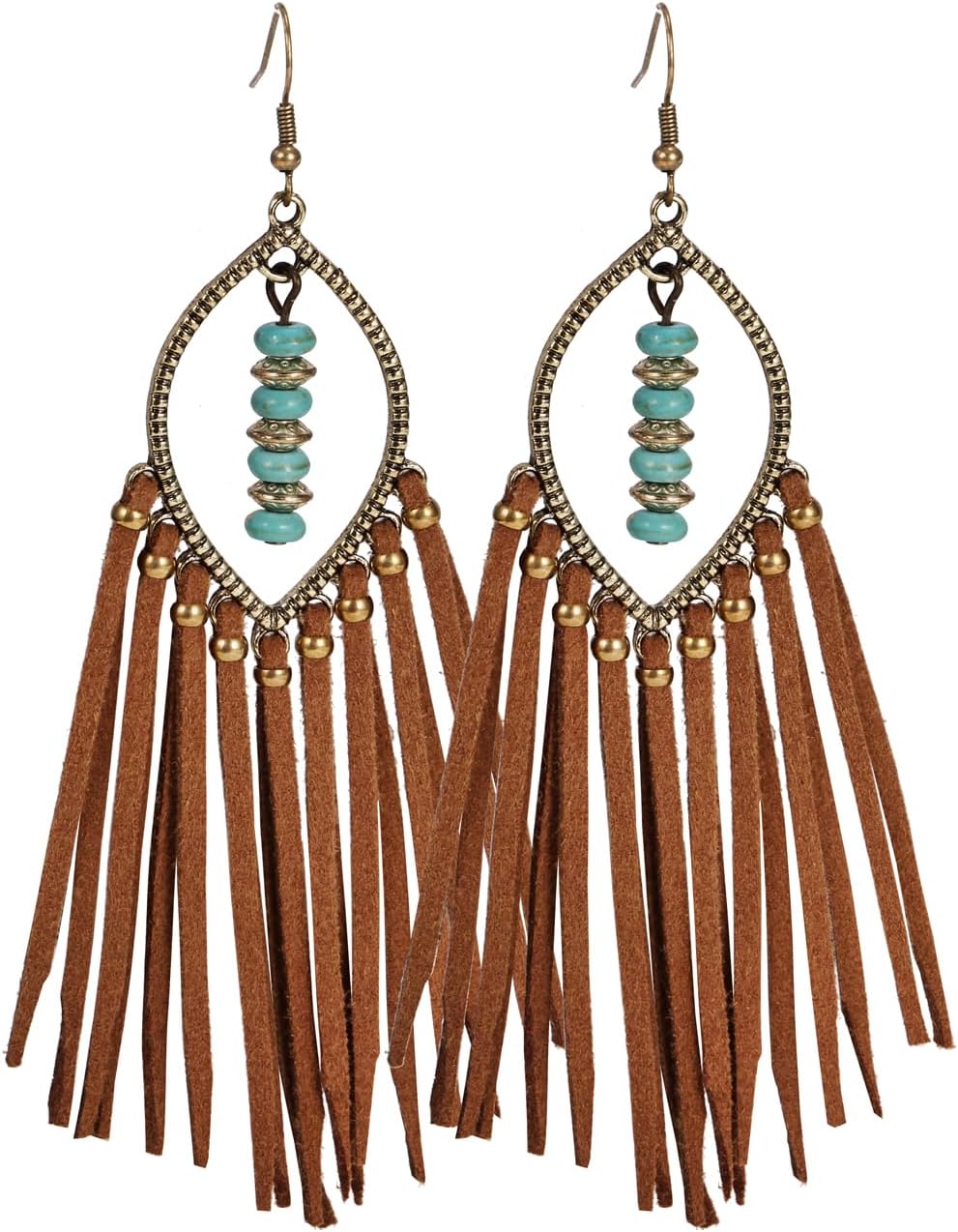 Long Bohemian Fringe Leather Earrrings Handmade Tassel Earrings with Turquoise Christmas Long Dangle Earrings for Women rodeo jewelry