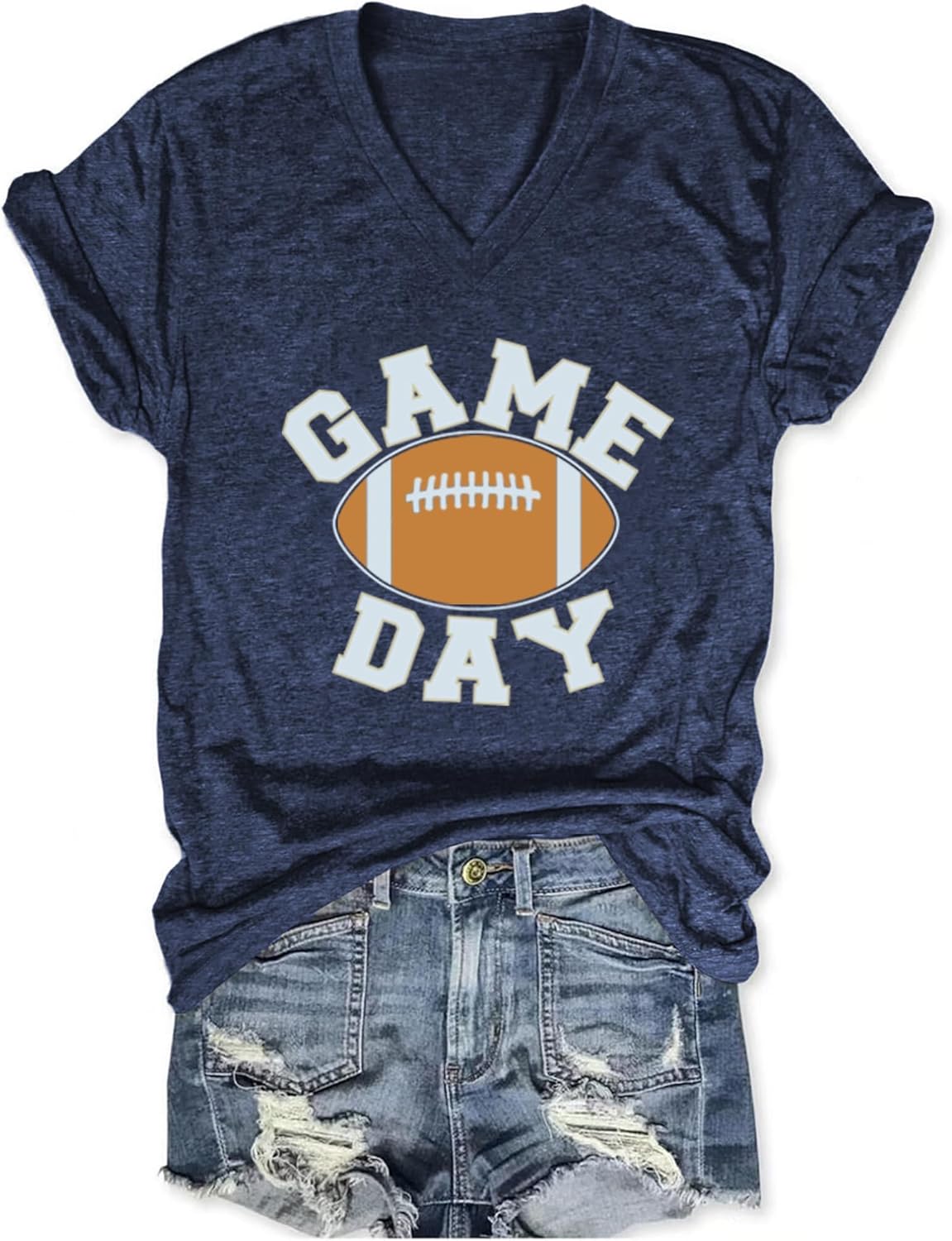 Game Day Football Shirts for Women: Football Mom T-Shirts Gameday Outfits Funny Vneck Short Sleeve Tees