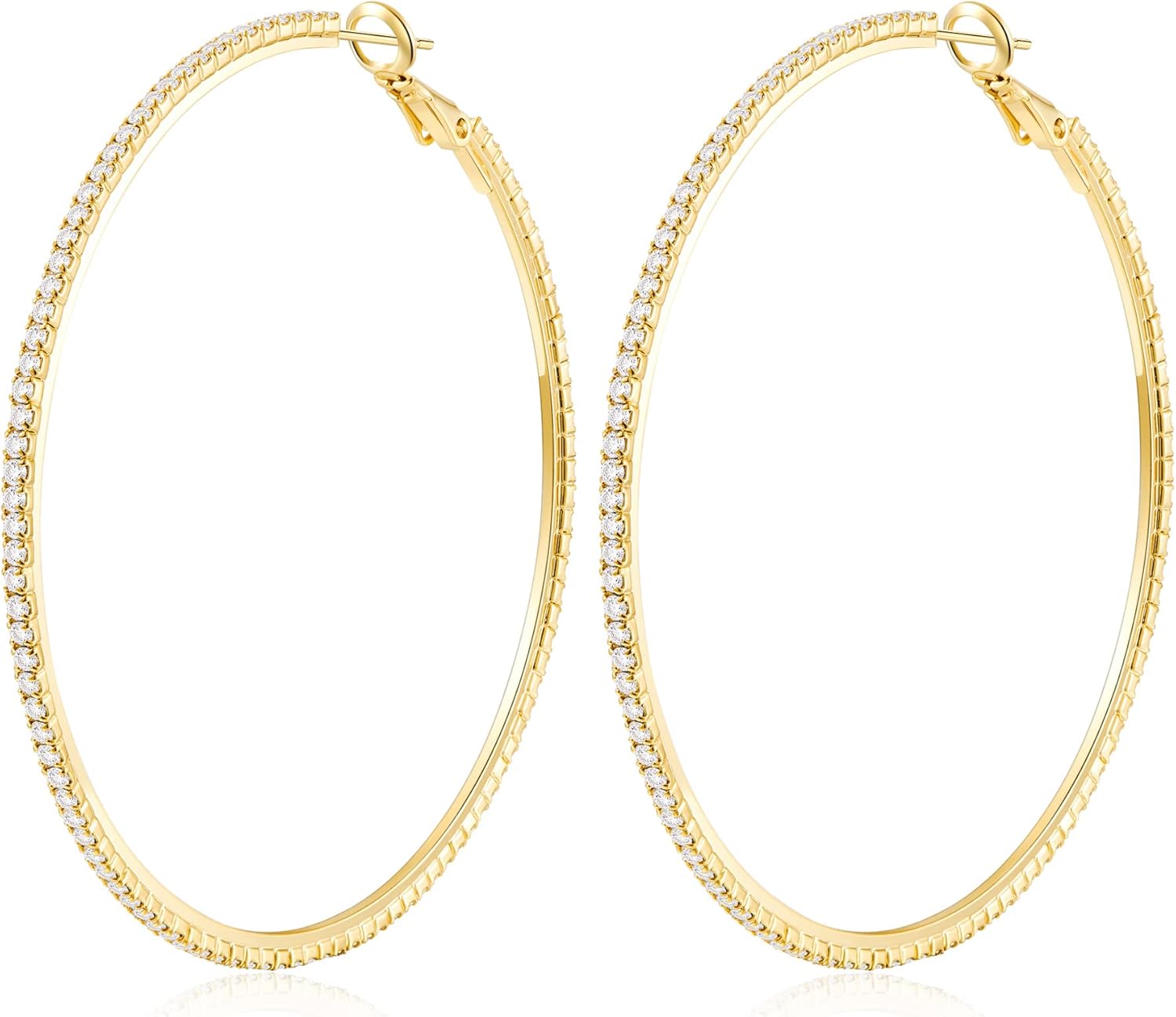 Kainier Gold Hoop Earrings for Women Hypoallergenic Sterling Silver Post Lightweight Hoops Jewelry 20mm-70mm Large Gold Earrings Textured or Zircon Rhinestone Design Trendy Statement Gift Jewelry