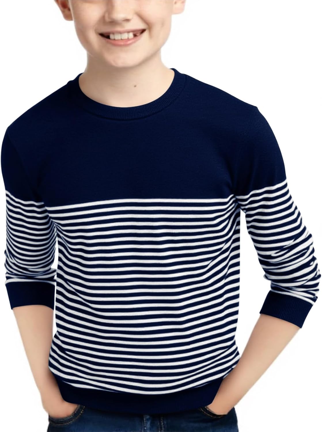 Haloumoning Boys Striped Sweaters Kids Fall Fashion Crewneck Rib Knit Pullover Sweater 5-14 Years