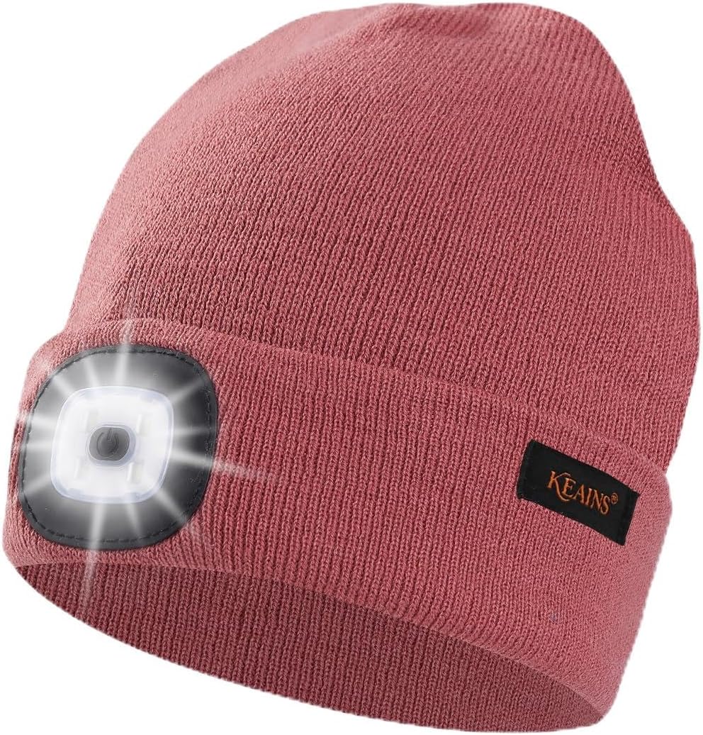 Keains Unisex Beanie with The Light ,Rechargeable LED Headlamp Cap, Warm Knit Hats for Winter Safety Gifts for Men Women Dad