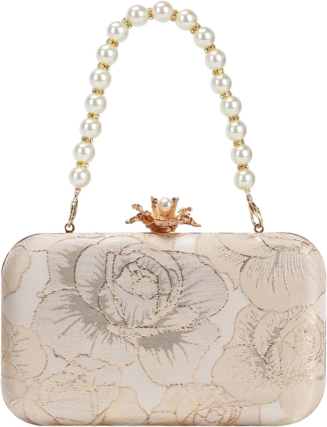 Womens Vintage Floral Embroidery Clutch Evening Handbag Shoulder Bags Purse for Wedding Party Prom