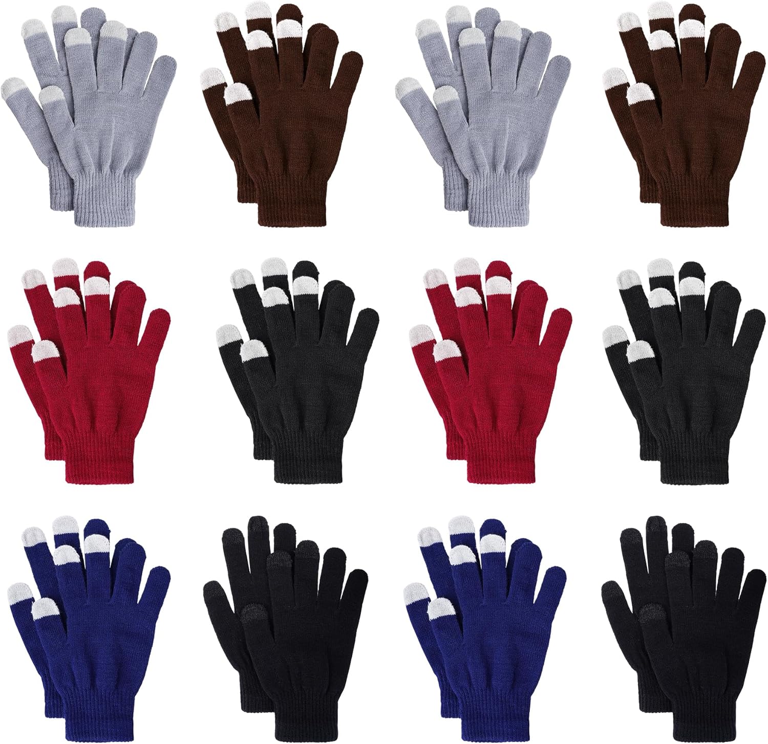 12 Pairs Winter Gloves Touch Magic Screen Gloves Stretchy Knit Cotton Gloves Bulk For Men Women Homeless Cold Weather
