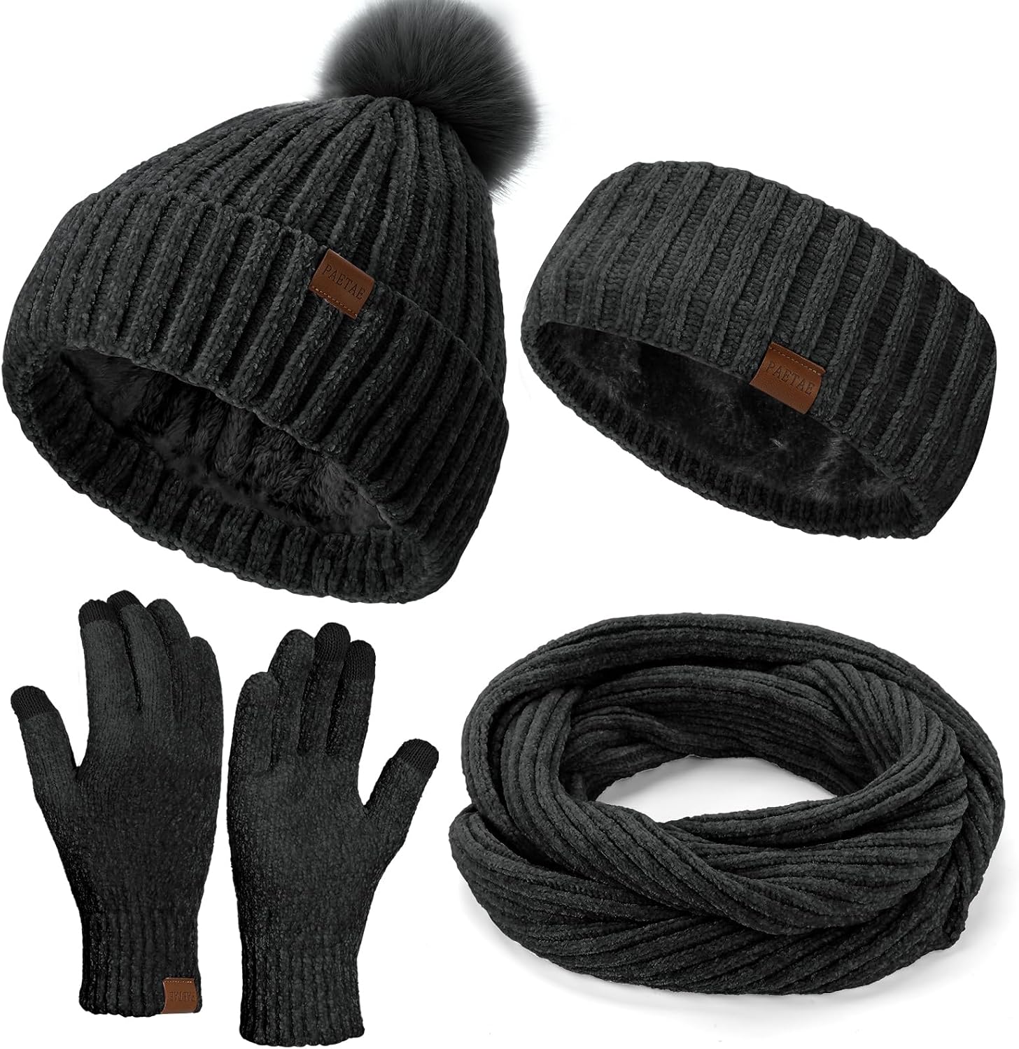 Winter Hats Gloves Scarf Set for Women, Beanie Hat Headband Ear Warmer, Infinity Scarf Touchscreen Gloves for Cold Weather