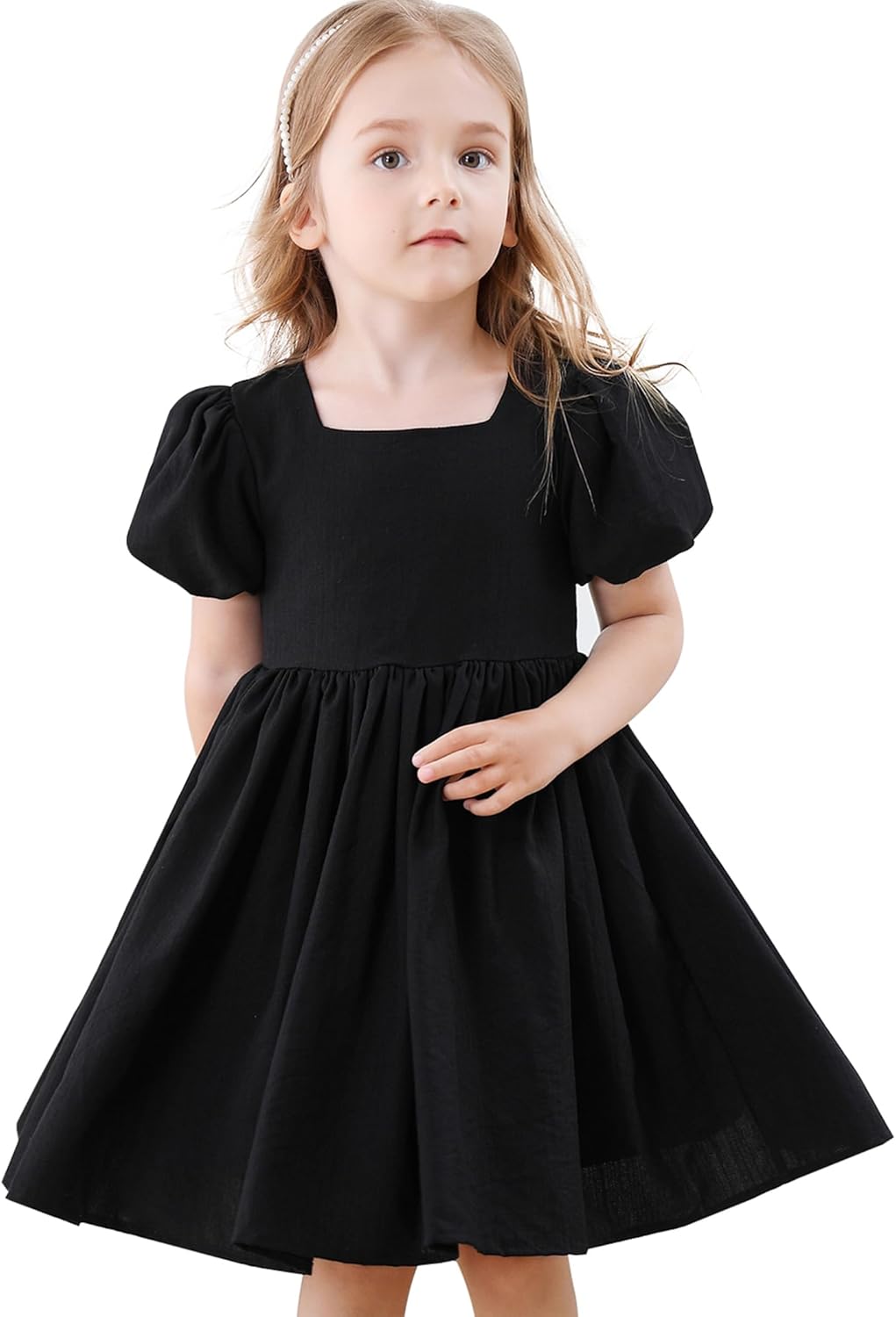 Tutu.kk Toddler Girls Casual Dress Puff Sleeve A-Line Swing Flared Party Birthday Formal Dresses 2-8 Years
