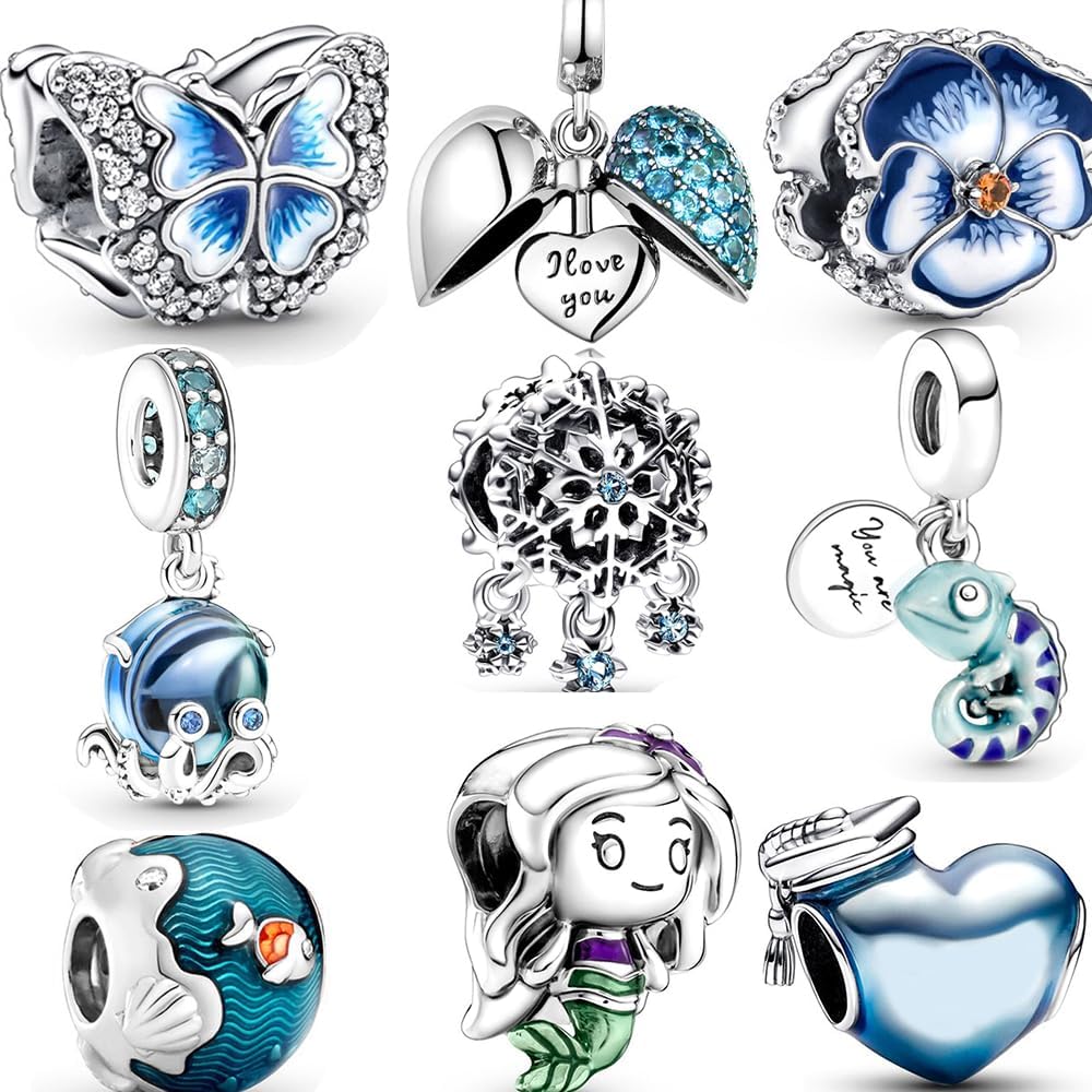9 Pack Silver Bead Charms for Bracelets and Necklaces Charm for Woman Cubic Zirconias Dangle Pendant Jewelry Beads Set