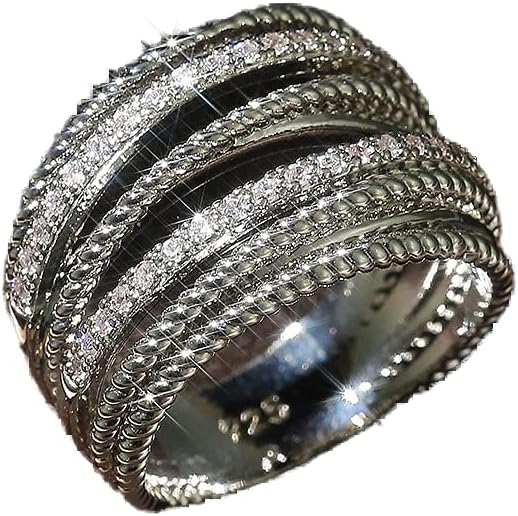 925 Sterling Silver Shiny Gem Ring Cubic Zirconia Rings CZ Diamond Multi Row Ring Eternity Engagement Wedding Band Ring for Women (US Code 10)