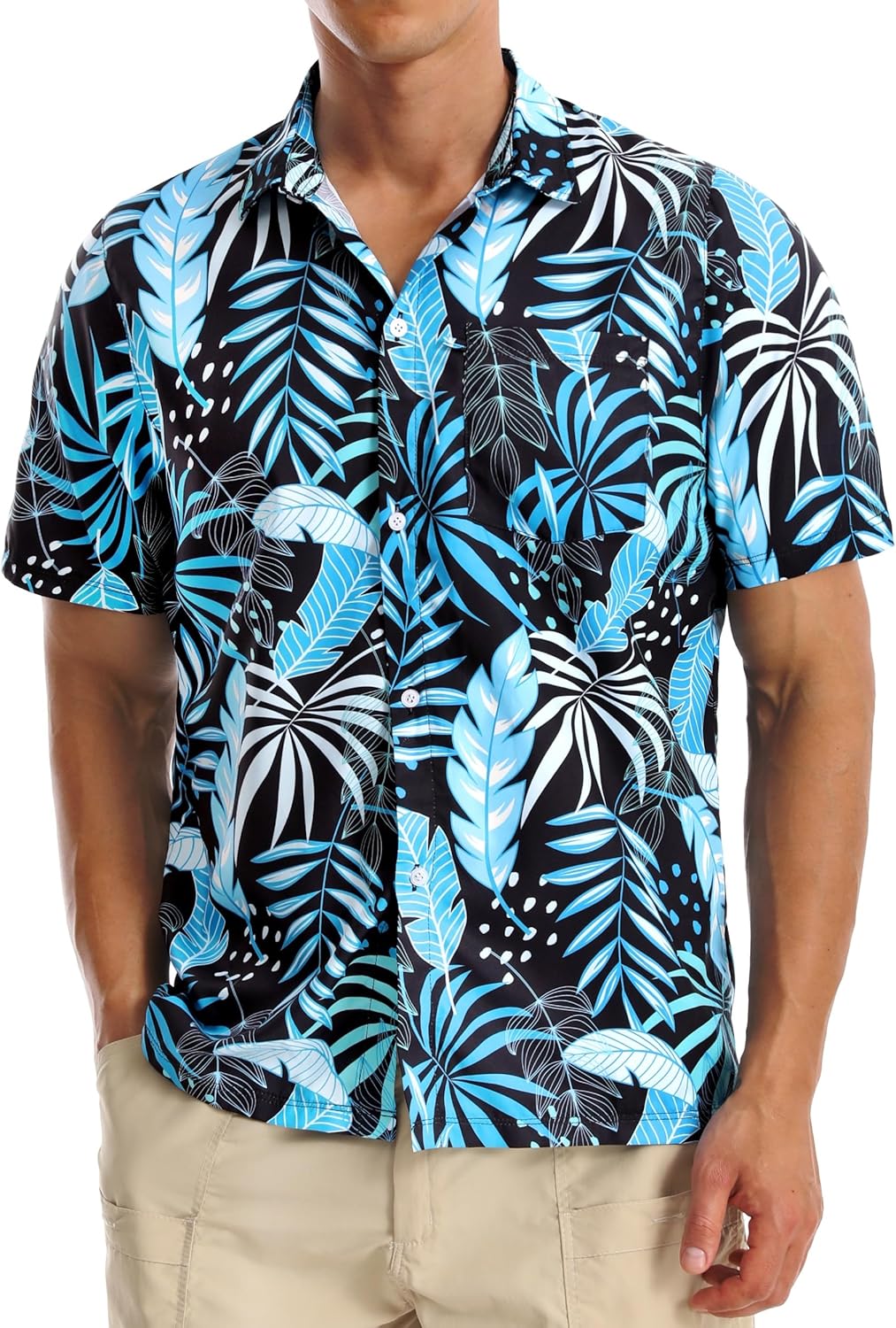FISHEAL Men's Hawaiian Shirt Short Sleeves, Casual Hawaii Button Down Beach Tropical Shirts for Mens Summer Trip Vacation