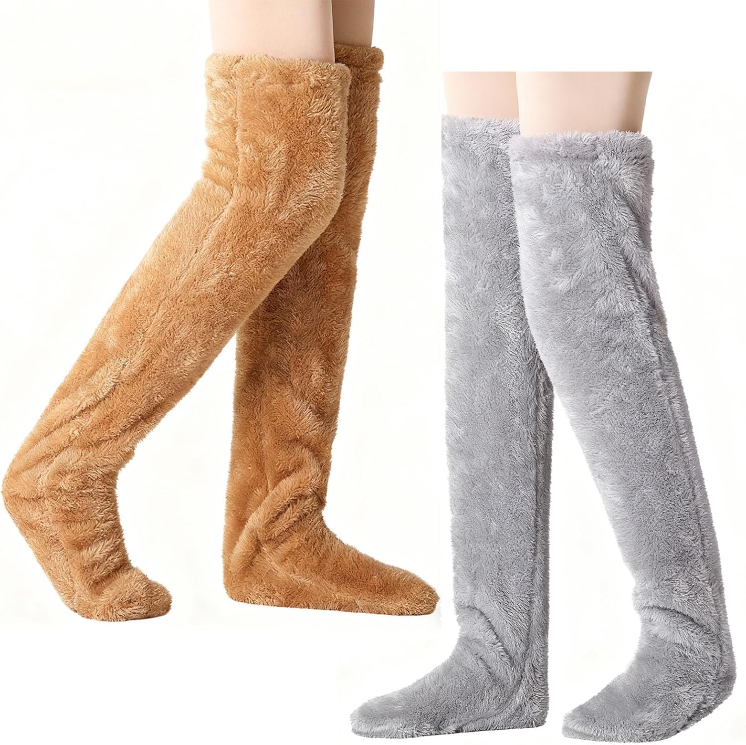 2 Pairs Over Knee Fuzzy Socks High Plush Stockings Fuzzy Long Leg Warmers Women Girls Winter Home Fluffy Sleeping Socks