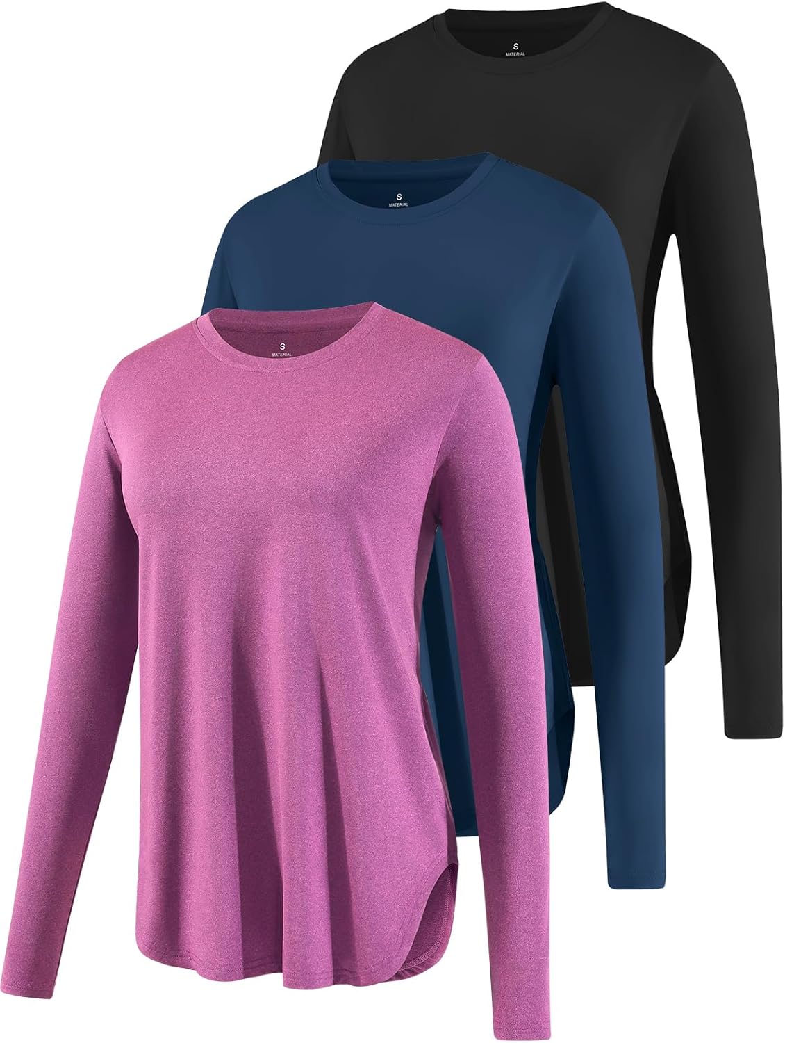 Xelky 3 Pack Womens Workout Long Sleeve Tops Quick Dry UPF 50+ Athletic T-Shirts Sun Protection Yoga Shirts Running Tee