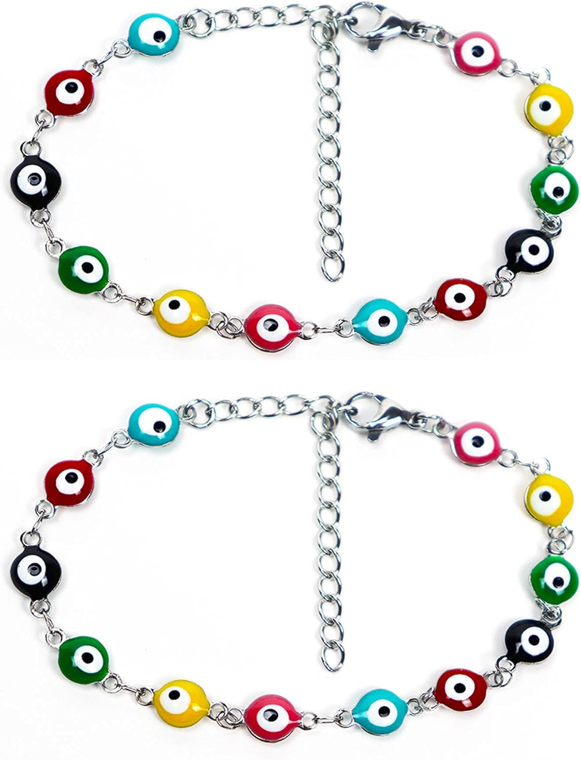 2 Pcs Evil Eye Anklet Bracelets for Women Men,18K Gold Plated Stainless Steel, Handmade Adjustable Amulet, Evil Eyes Jewelry for Family Best Friends