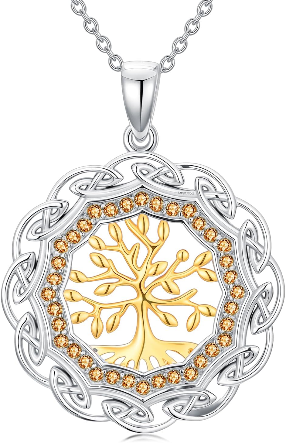 Sterling Silver Birthstone Celtic Tree of Life Necklace, 18K Gold Plated Colored Gemstone Tree of Life Pendant Two-Tone Necklaces Jewelry Birthday Gifts for Women 18" - 20"