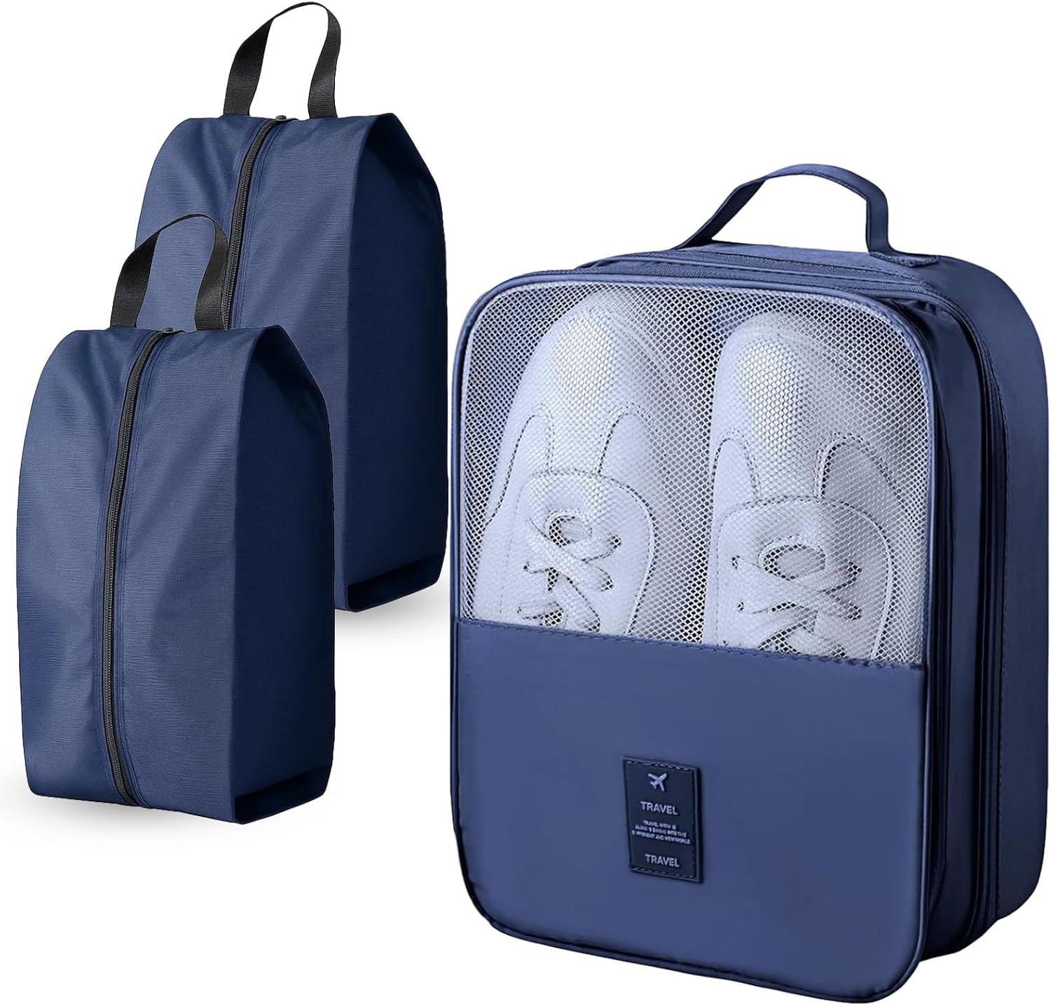 Shoe Bags for Travel Holds 3 Pair of Shoes, Travel Shoe Bag with 3 Layers Compartments, Waterproof & Washable, Navy