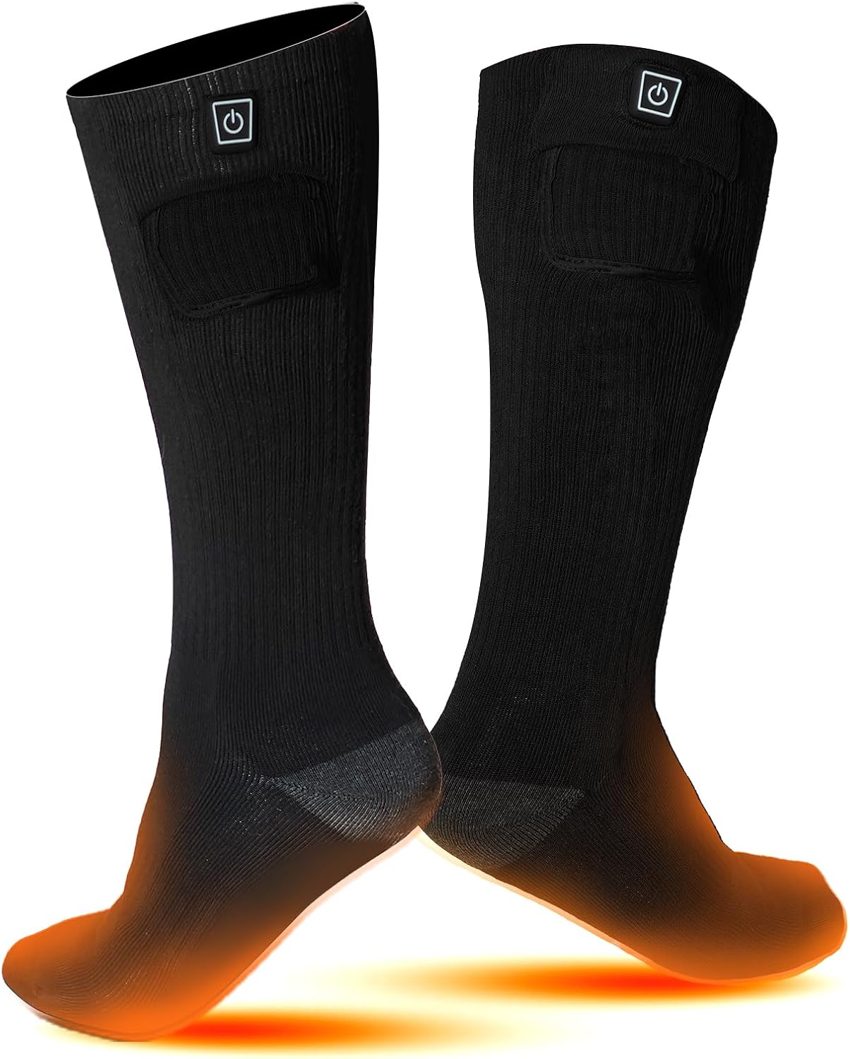 - 【Rapid Heating Technology】These rechargeable heated socks heat up within 30 seconds to deliver instant warmth to toes, forefoot, and calves with evenly distributed heat elements.