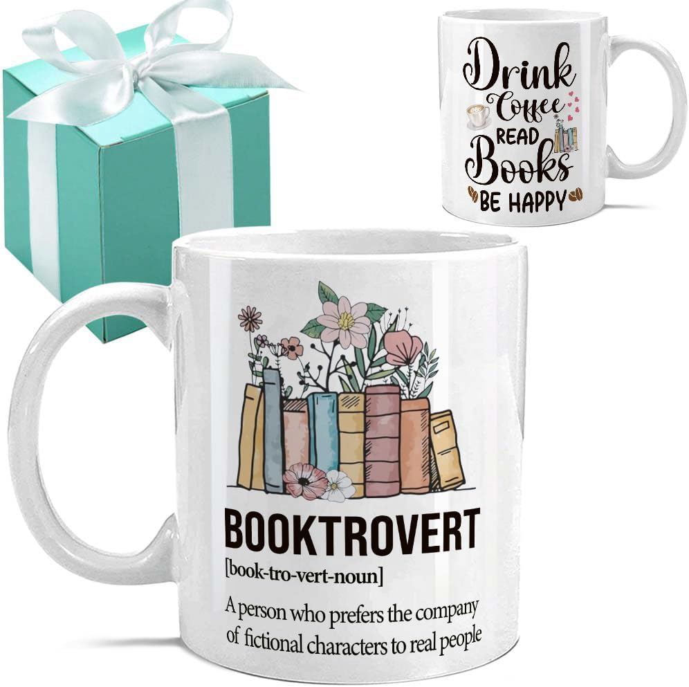 Book Lover Mug -Funny Bookish Gifts for Women, Book Club Gift, Librarian Reader Gift for Bookworms, Reading Themed Coffee Mugs - Drink Coffee Read Books Be Happy