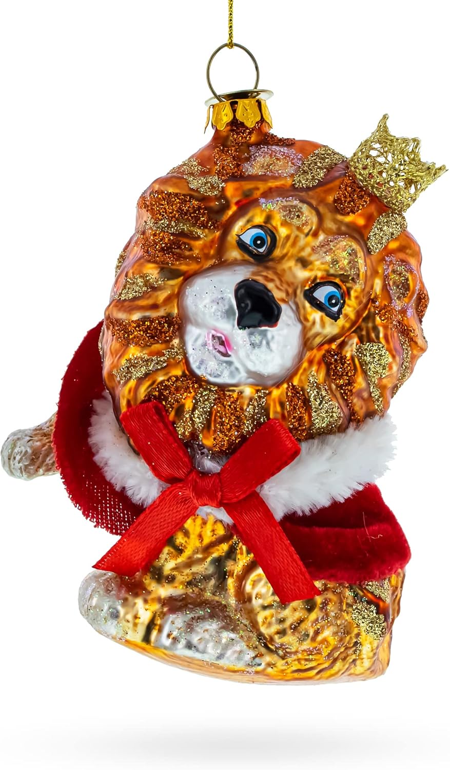 Regal Lion in Scarlet Cape Blown Glass Christmas Ornament