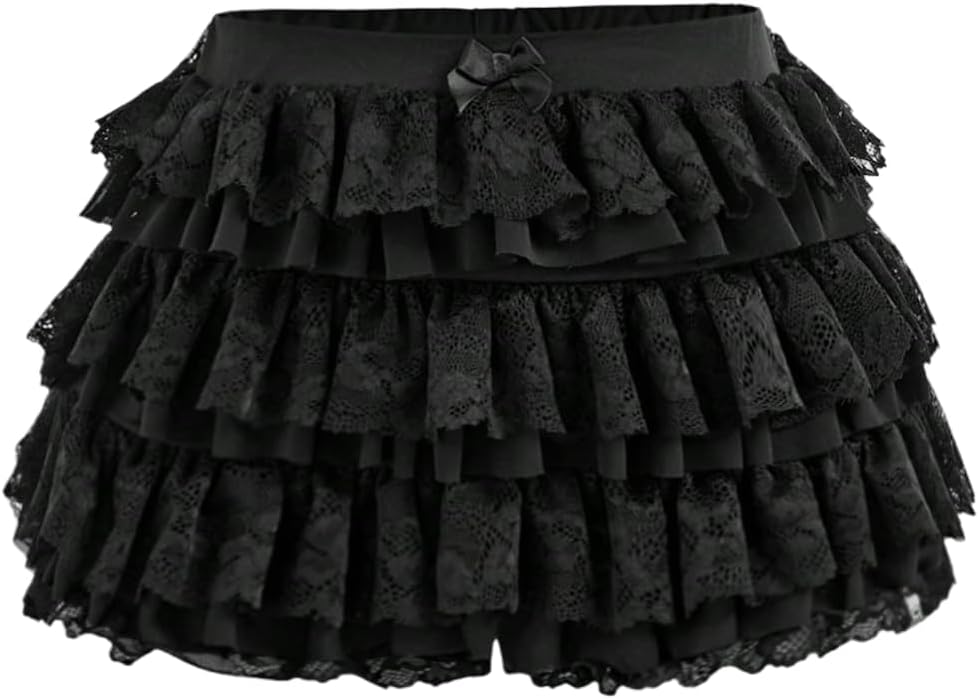 Girl's Bow Lace Bloomer Shorts Y2k Ruffle Layered Elastic Waist Mini Shorts