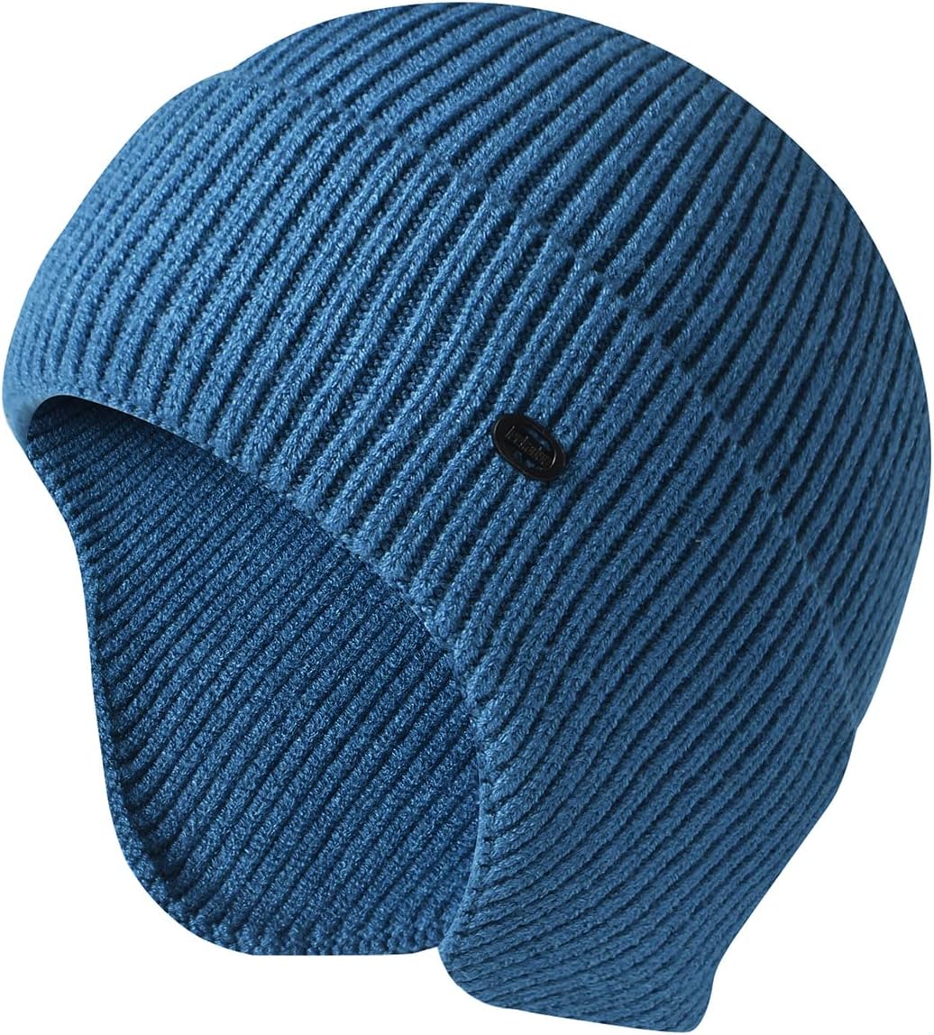 Winter Beanie Hats for Men Outdoor Stretchy Knit Ski Caps with Earflap Windproof