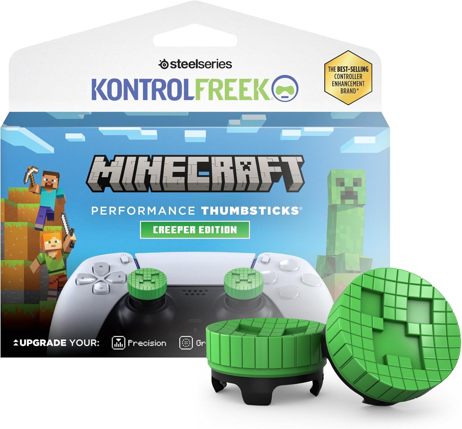 KontrolFreek Minecraft Performance Thumbsticks Creeper Edition: for PlayStation 5 (PS5) & PlayStation 4 (PS4) Controller | Mid-Rise | Green