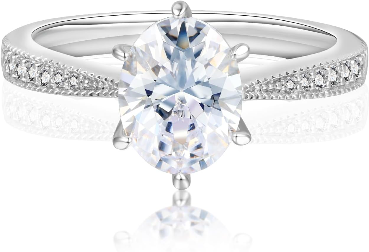 2ct Oval Cut Cubic Zirconia Engagement Ring for Women, Sterling Silver Wedding Band with Rhodium Plating, Size 5-11, Hypoallergenic, Gift for Her (Anniversary, Proposal, Valentine’s Day)