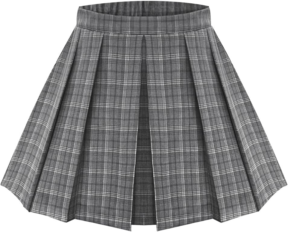 RITERA Plus Size Basic Versatile Stretchy Elastic Waist Flared Casual Mini Skater Skirt/Pleated Plaid Skirt for Women XL-5XL