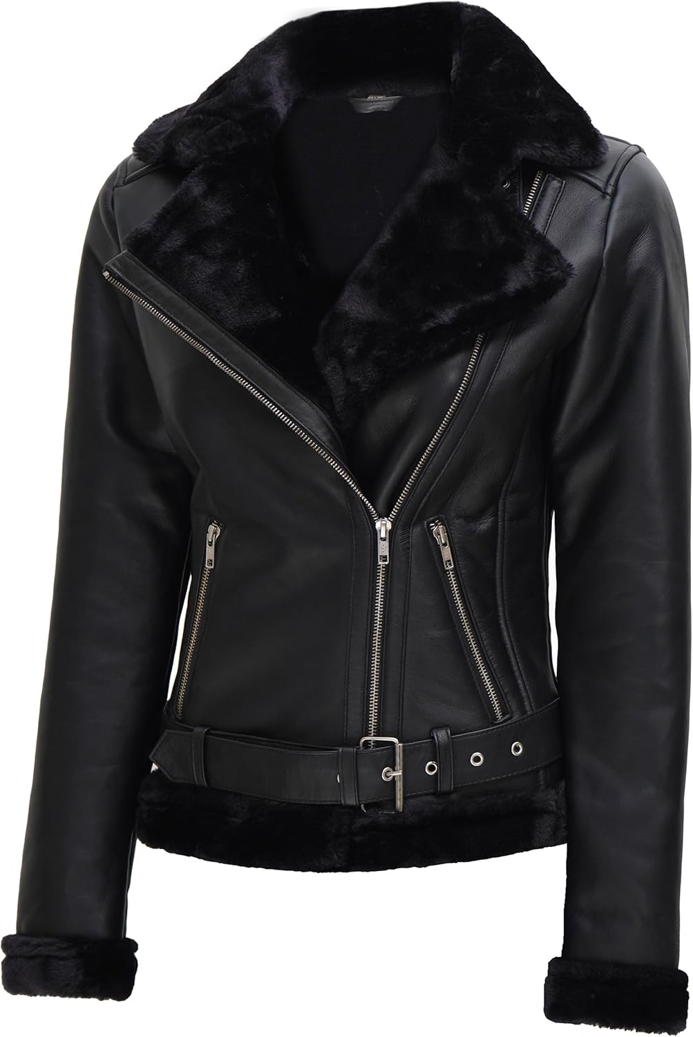 Blingsoul Womens Leather Sherpa Jacket - Real Leather Winter Jackets for Women