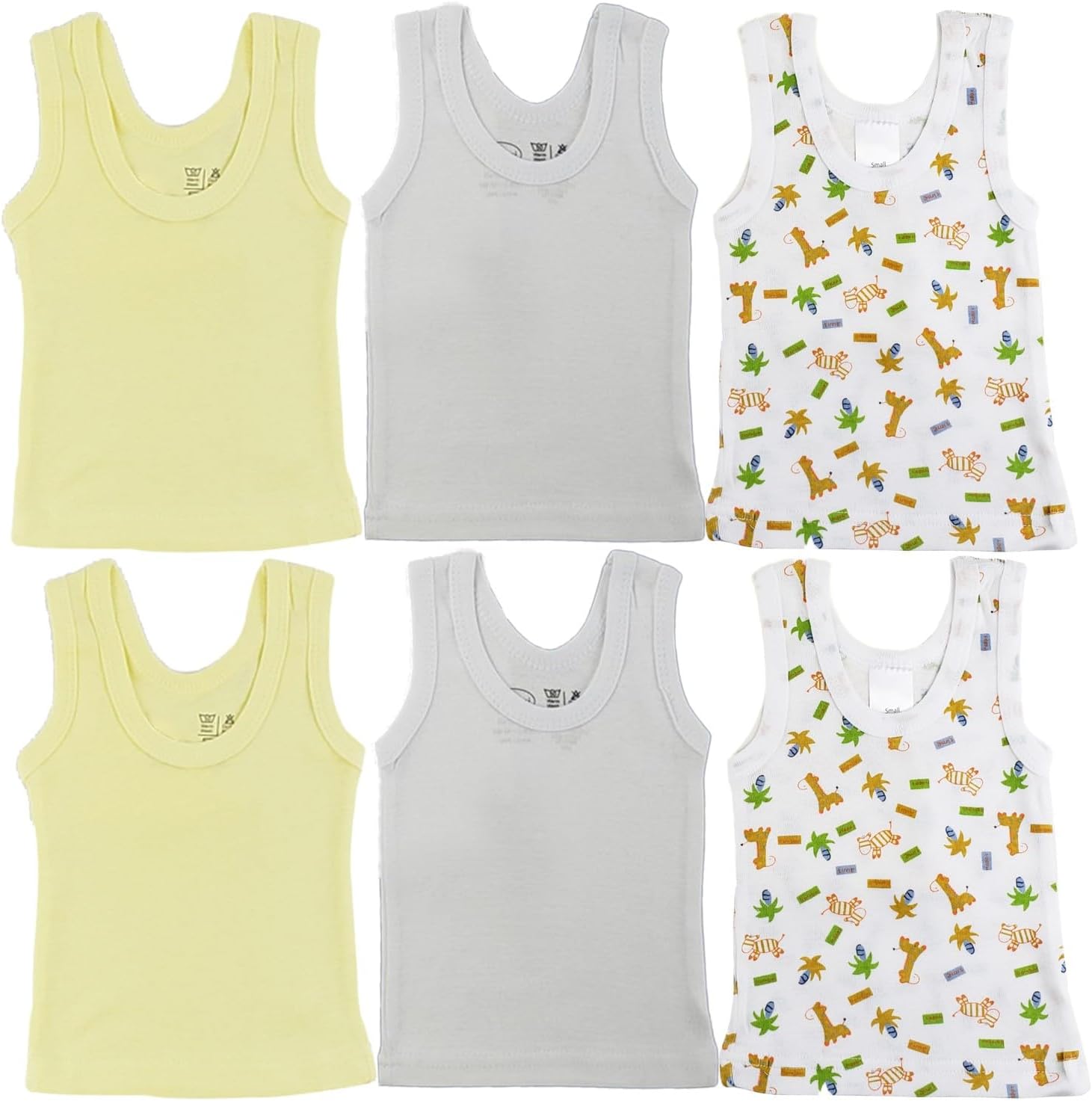Newborn Baby Sleeveless Pack of 6 Tank Tops 100% Cotton Shirts, Short Sleeve Tees 0-24 Months Boys, Girls, Unisex