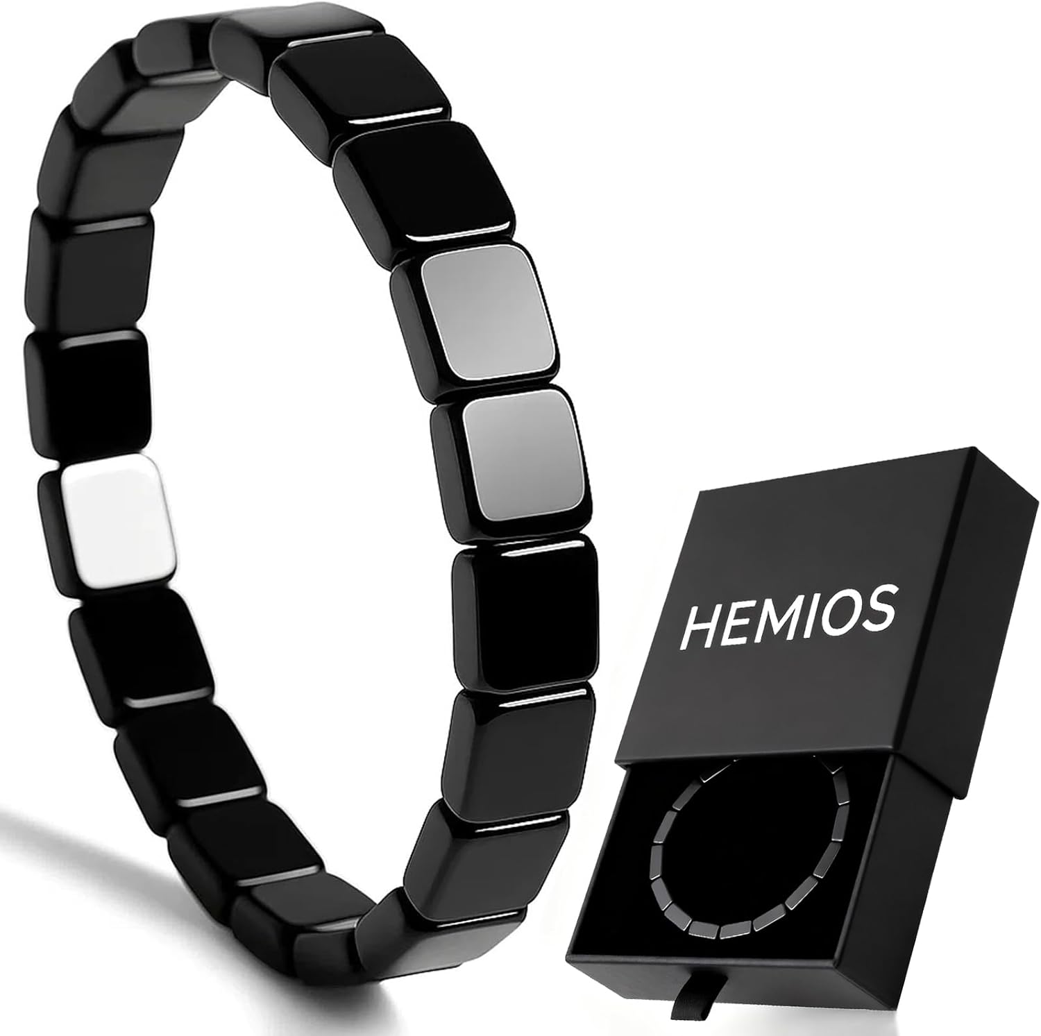 Hematite Bracelet Men - Reignites Masculine Energy, Natural Hematite Stone Beaded Stretch Healing Bracelets Valentines Birthday Anniversary Christmas Jewelry Gifts for Him