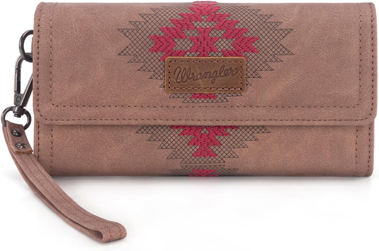 X Wrangler Western Wallet for Women RFID Blocking Wristlet Wallets with Aztec Embroidery