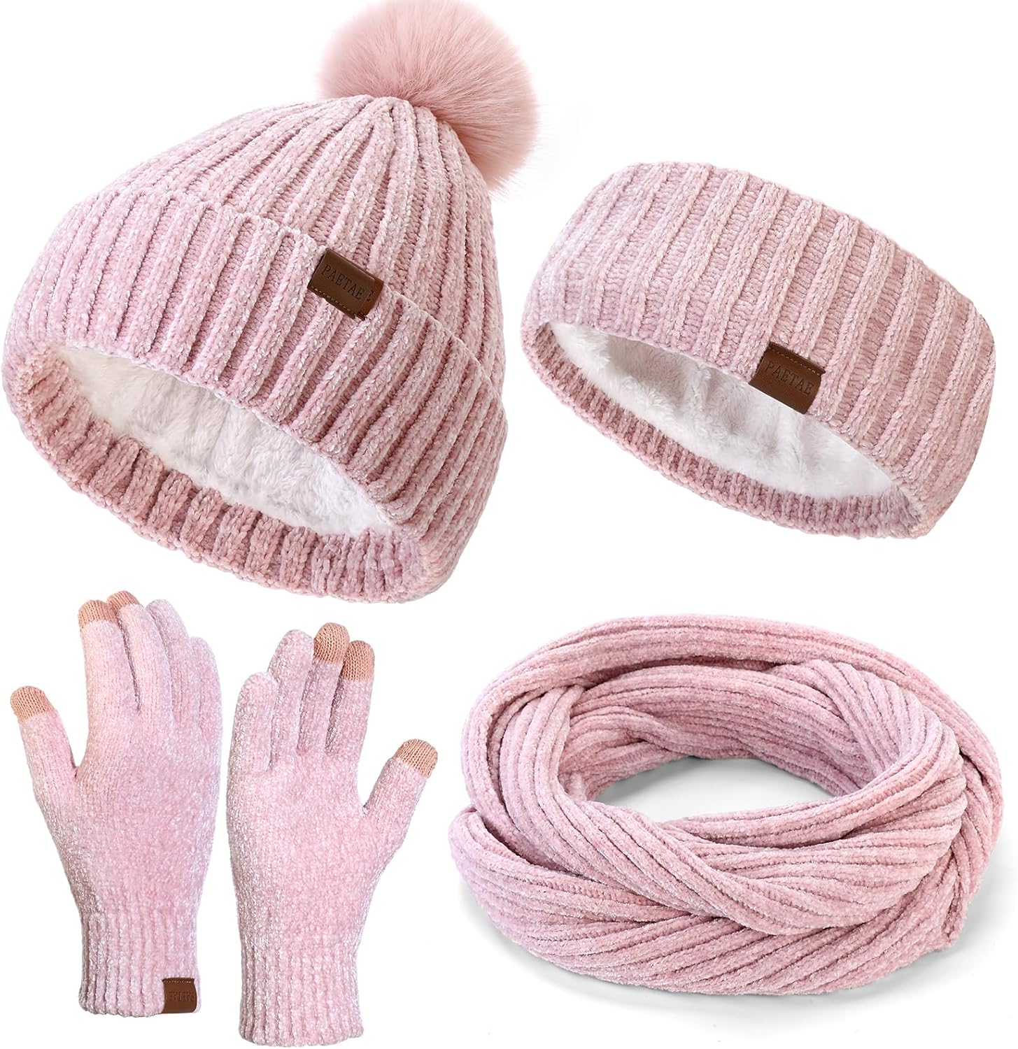 Winter Hats Gloves Scarf Set for Women, Beanie Hat Headband Ear Warmer, Infinity Scarf Touchscreen Gloves for Cold Weather