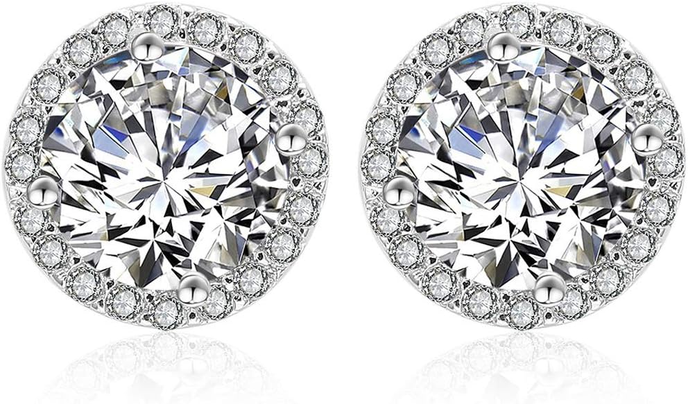 Cubic Zirconia Stud Earrings Girls - Post Earrings for Women Clear Crystal Diamond Studs Halo Stud Earrings Sterling Silver Top cz Zircon Fashion Everyday Costume Jewelry Gift Pack
