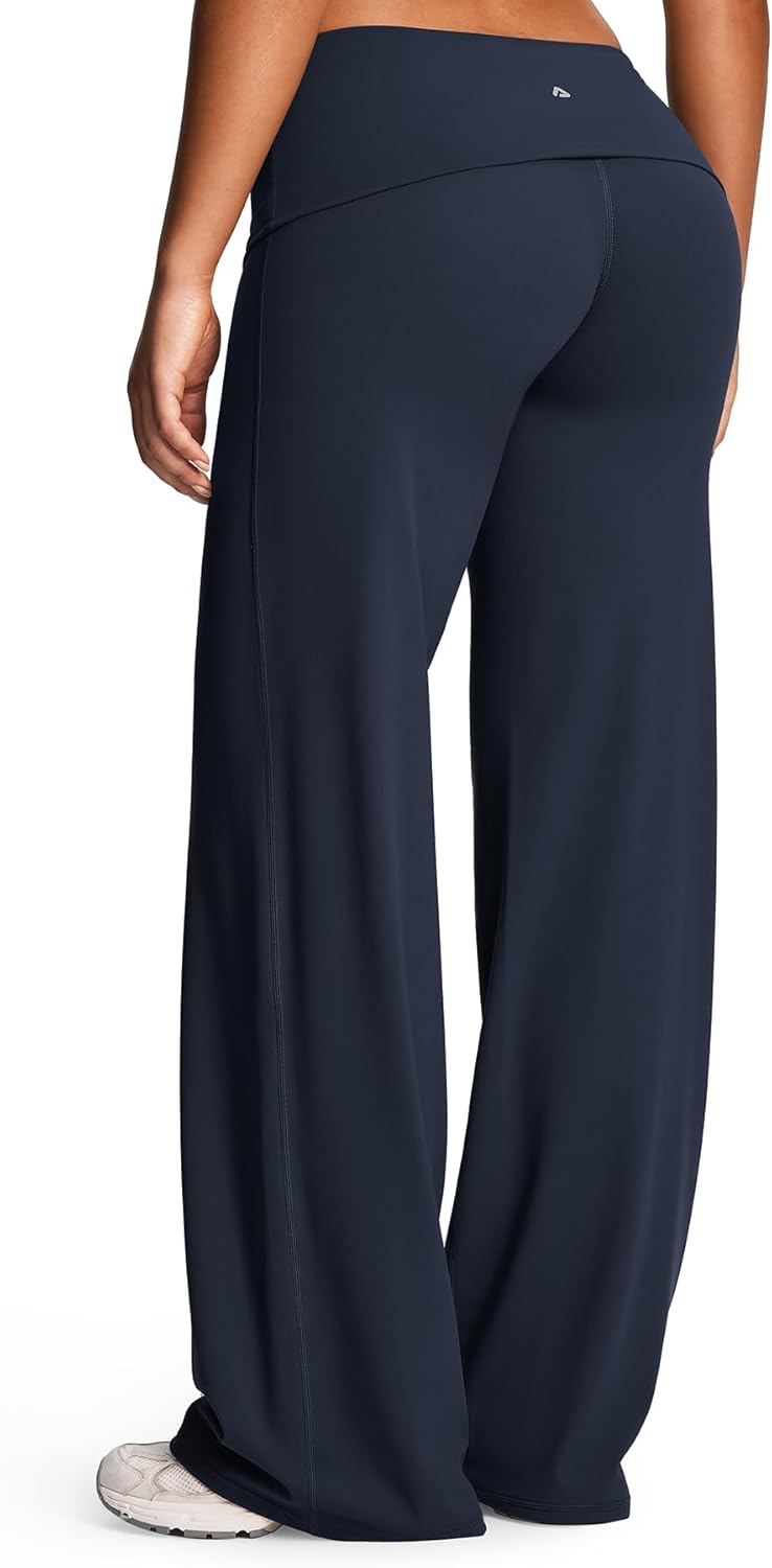 Aoxjox Women's Workout Athlenza Fold Over Waist Straight Leg Bottoms Lumastretch™ Gym Yoga Pants 31"/33"/35"
