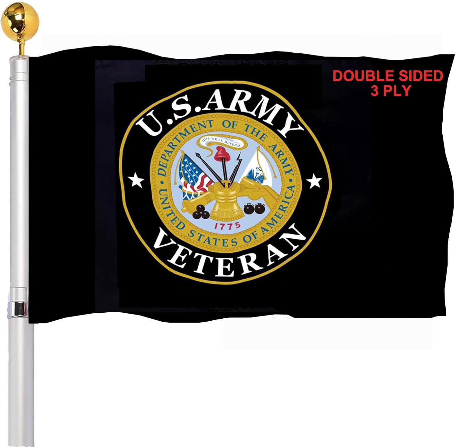 US Army Veteran Military Flag 3x5 Outdoor Double Sided 3 Ply 2 Brass Grommets Bright Color Double Stitching For Home Company Indoor Outdoor Outside