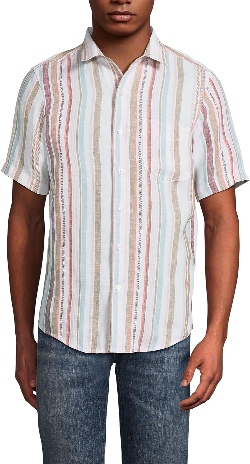 Lands' End Men's Traditional Fit Short Sleeve Linen Shirt