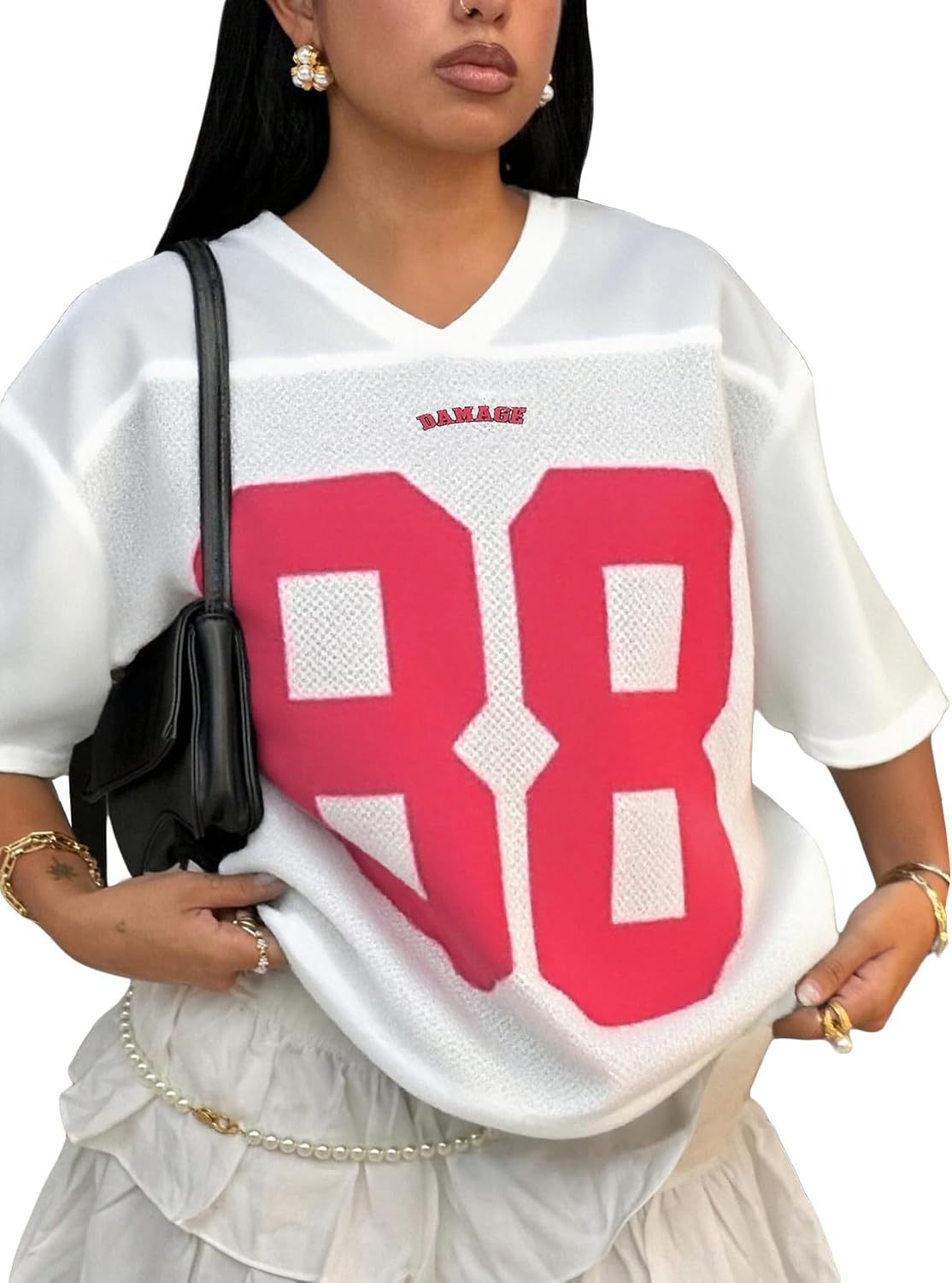 Verdusa Women's Plus Size Football Jersey Shirts Number Graphic Tees Short Sleeve T Shirt