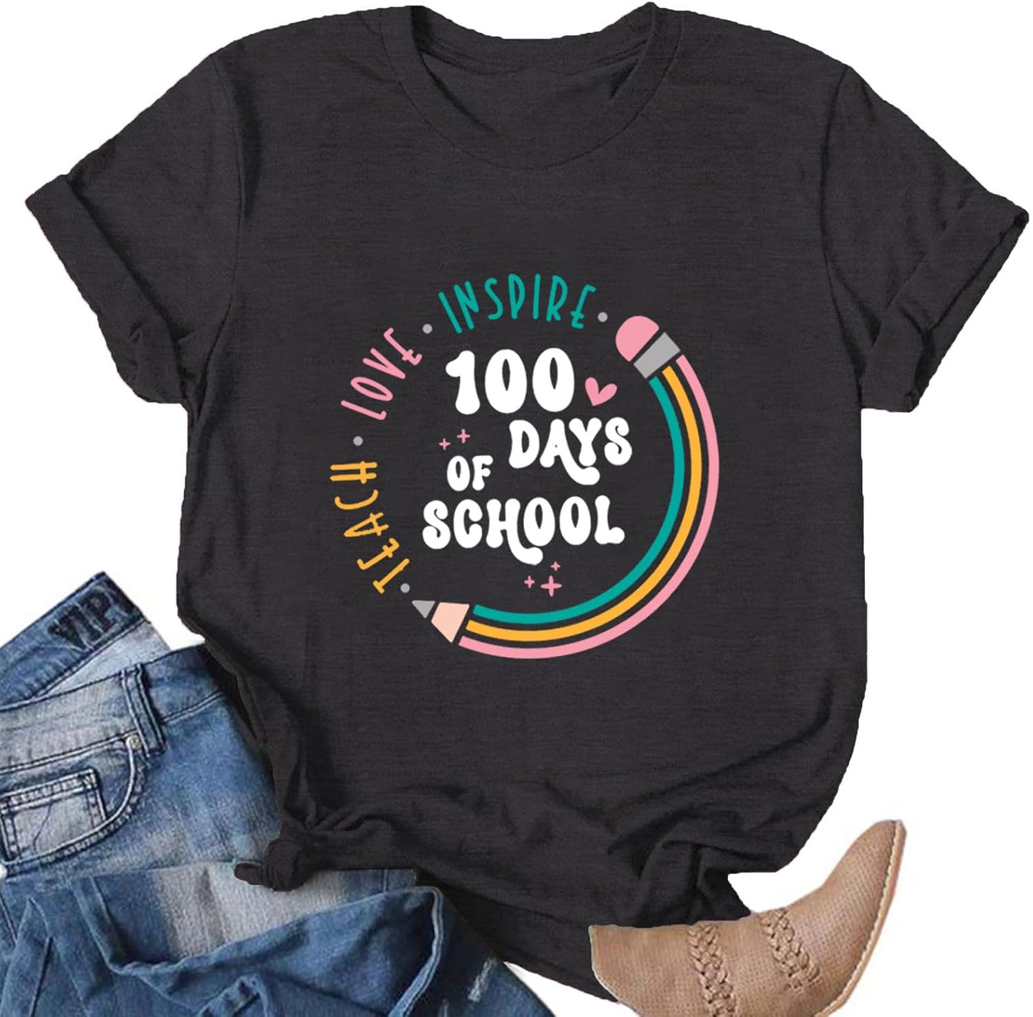 100th Day of School Shirt for Women Teacher Graphic T-Shirt Funny Teach Short Sleeve Tee Tops