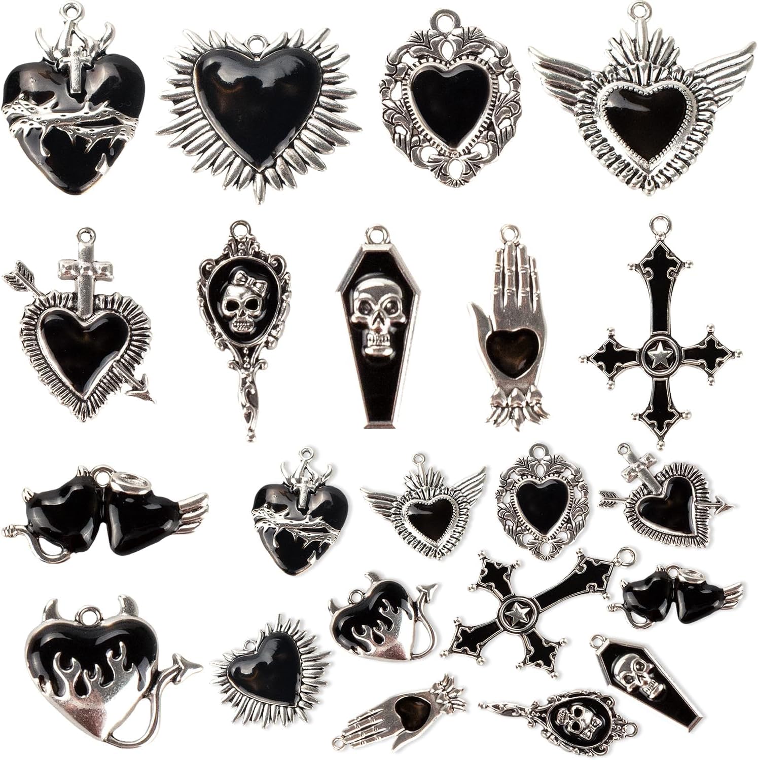 Giata11 Pcs Large Gothic Style Black Cross Skull Tombstone Heart Pendants Goth Halloween Charms for Jewelry Pendants Making DIY Craft Supplies