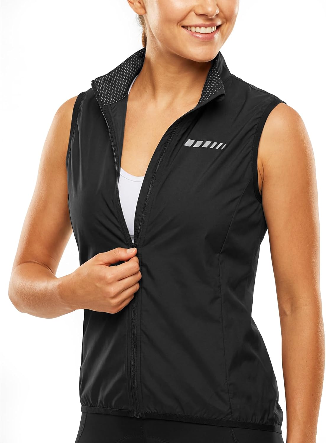 qualidyne Women's Windproof Cycling Vest, Lightweight Full-Zip Breathable Sleeveless Bike Jacket, 1 Back Pocket, Reflective