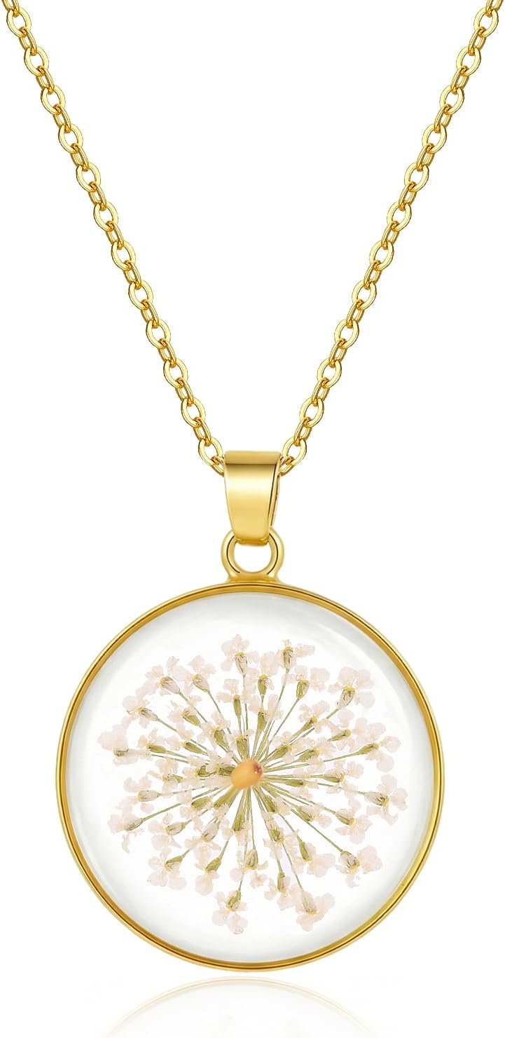 Real Pressed Flower Necklace for Women, Handmade Birth Floral Pendant, Meaningful Nature-Inspired Jewelry Gift for Christmas, Valentine’s & Mother’s Day - 18"