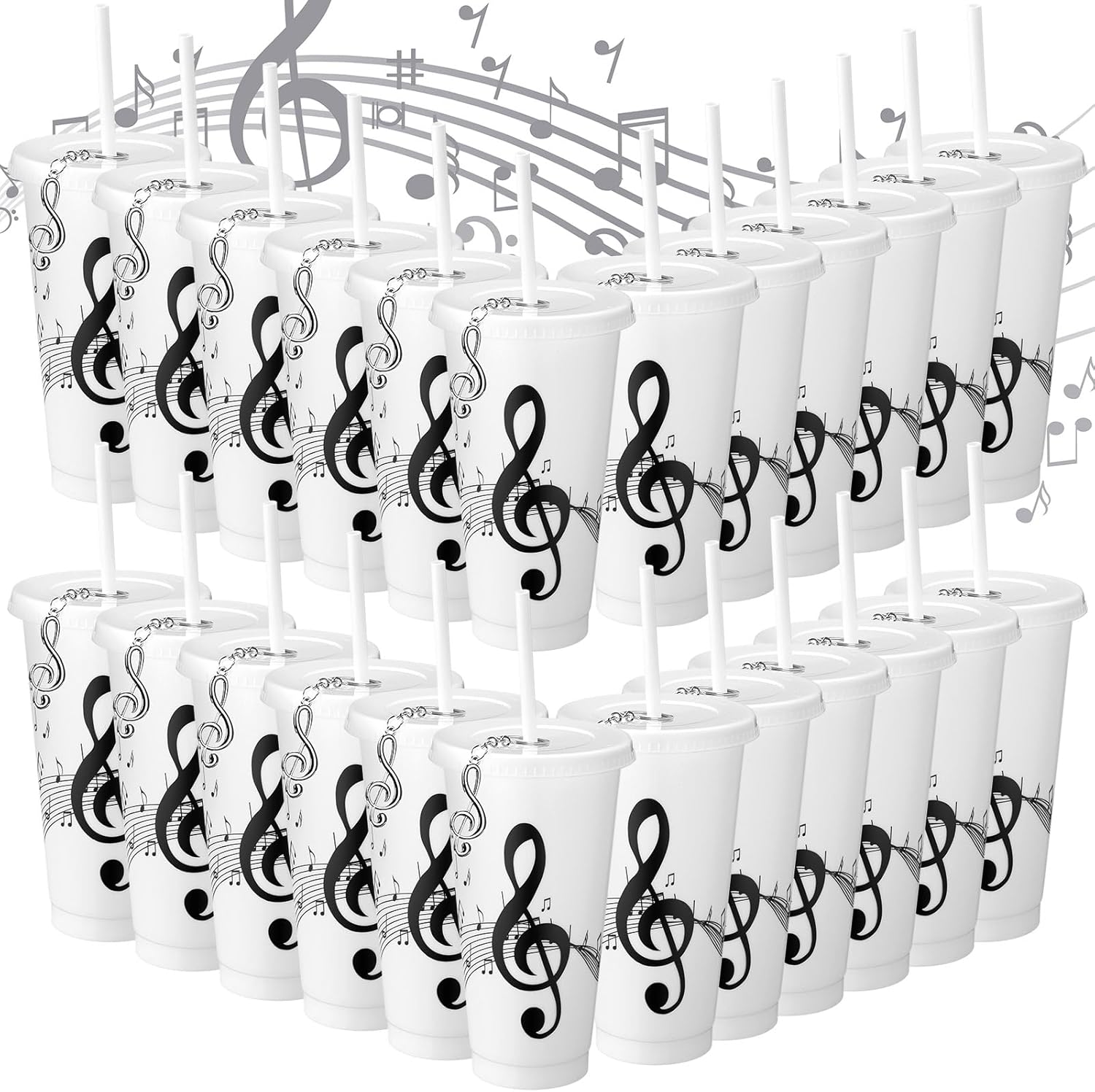 - A Favorite Among Music Enthusiasts: our 24 oz piano keys music note tumbler set is a must-have for every music lover, the set includes 24 music note themed white plastic cups and 24 musical note keychains, well suited for any music themed parties or events, with their stylish and fresh design, these music themed gifts are sure to be the talk of your gathering